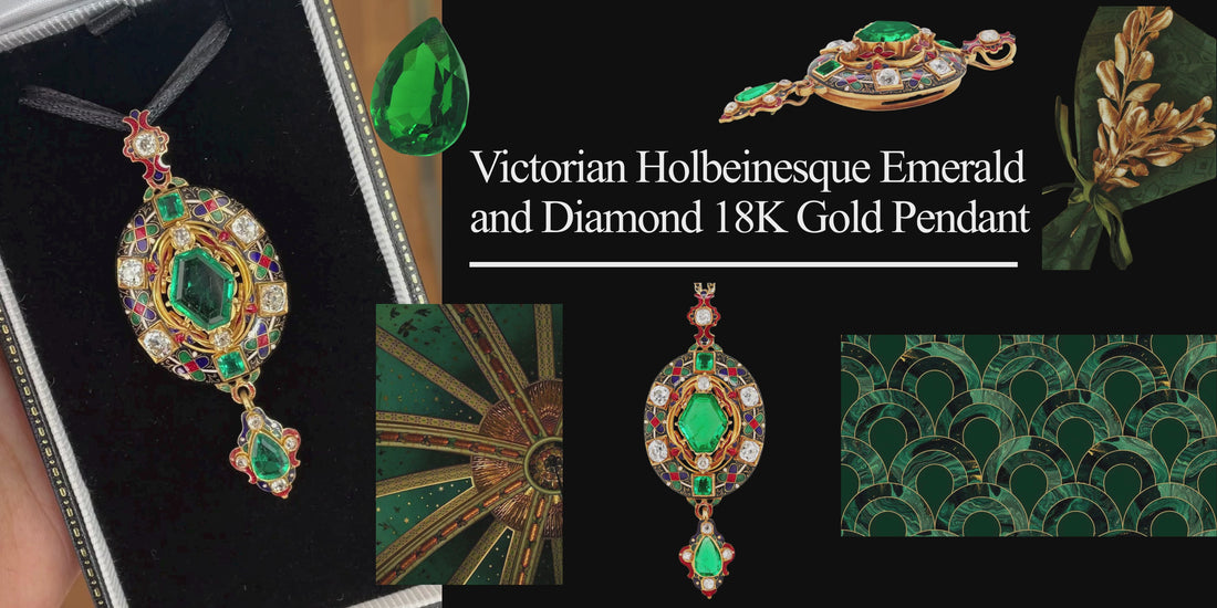 Victorian Holbeinesque jewellery is a distinctive style that emerged during the mid-19th century, inspired by the Renaissance artist Hans Holbein the Younger. This jewellery trend was popularised during the reign of Queen Victoria and was characterised by its rich and ornate designs. Rich of form and colour, It typically featured intricate enamelwork, gemstones, and pearls set in elaborate gold and silver settings. Holbeinesque jewellery is highly collectible due to its extravagant opulence, historical significance, remarkable craftsmanship, and the stories it tells about the artistic and cultural influences of the time.