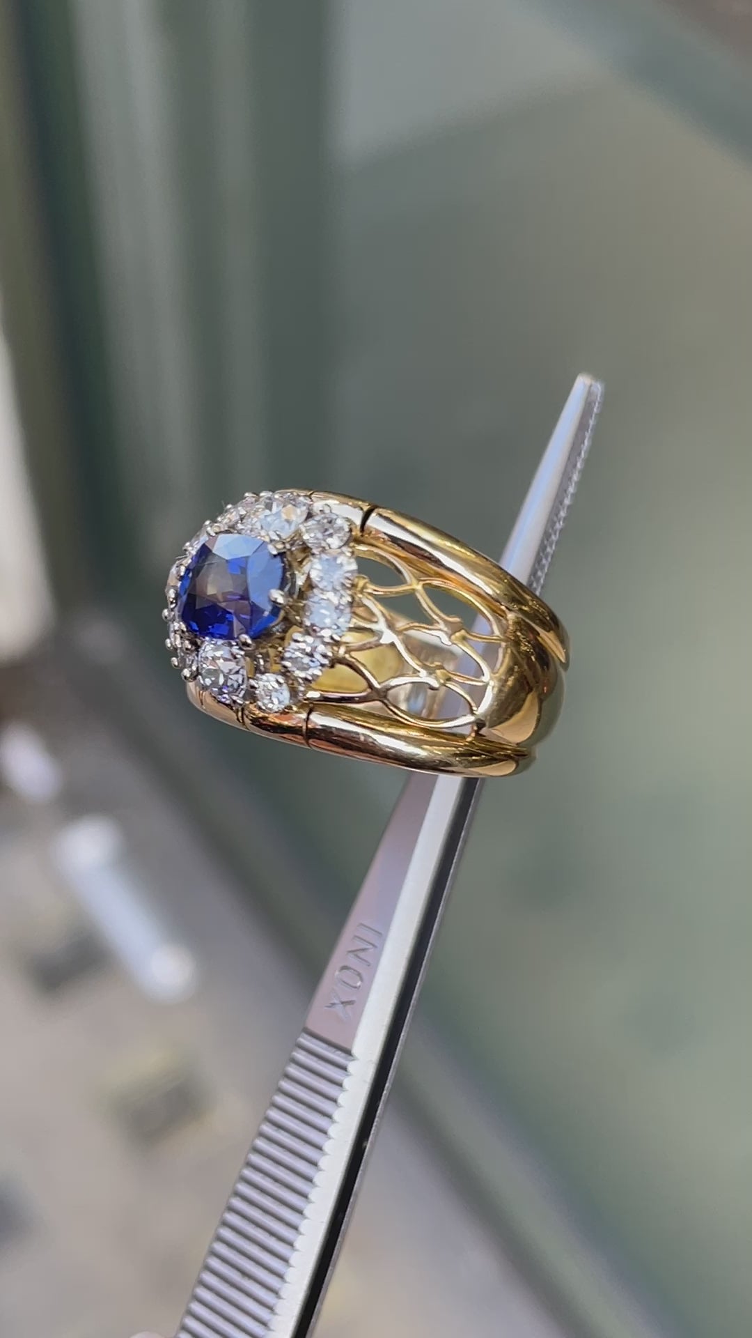 1.49ct Natural Unheated Blue Sapphire & Diamond 18K Gold Dress Ring, c.1940s