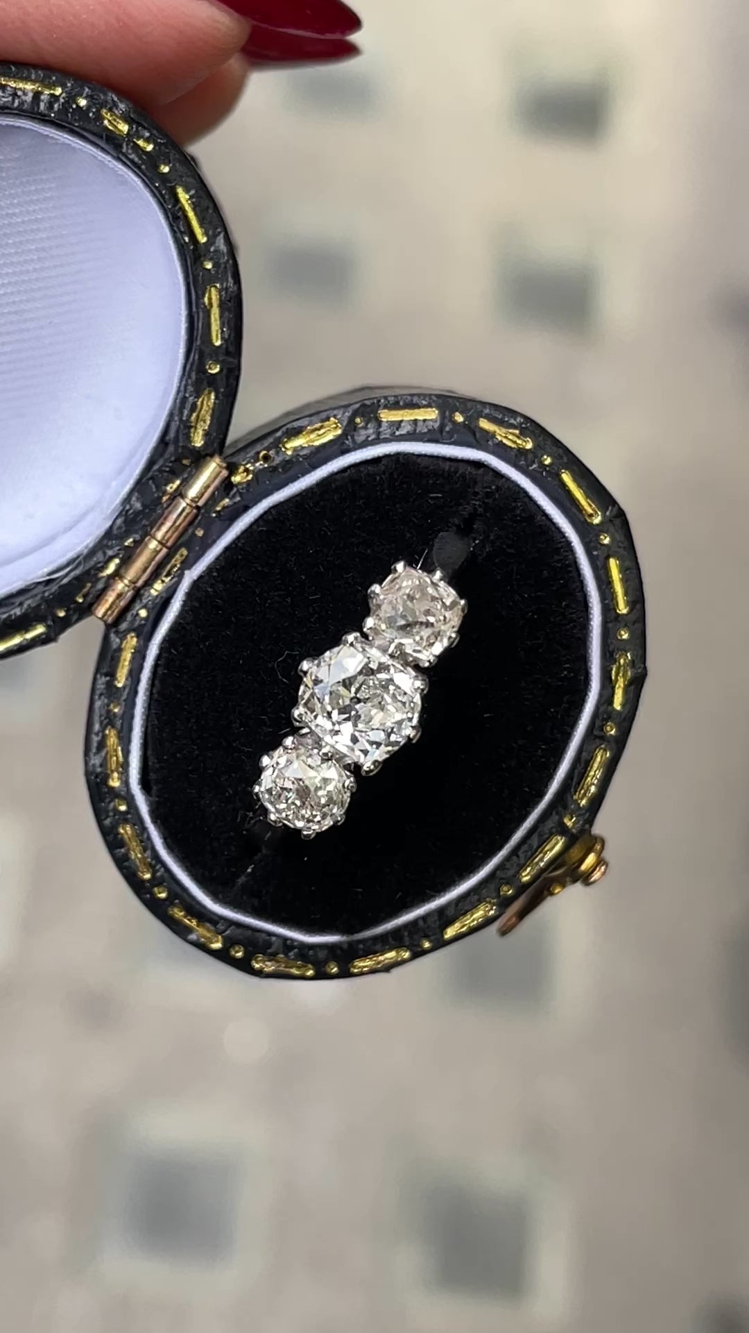 1.56 Carat Victorian Old Cut Diamond Three-Stone Platinum Engagement Ring