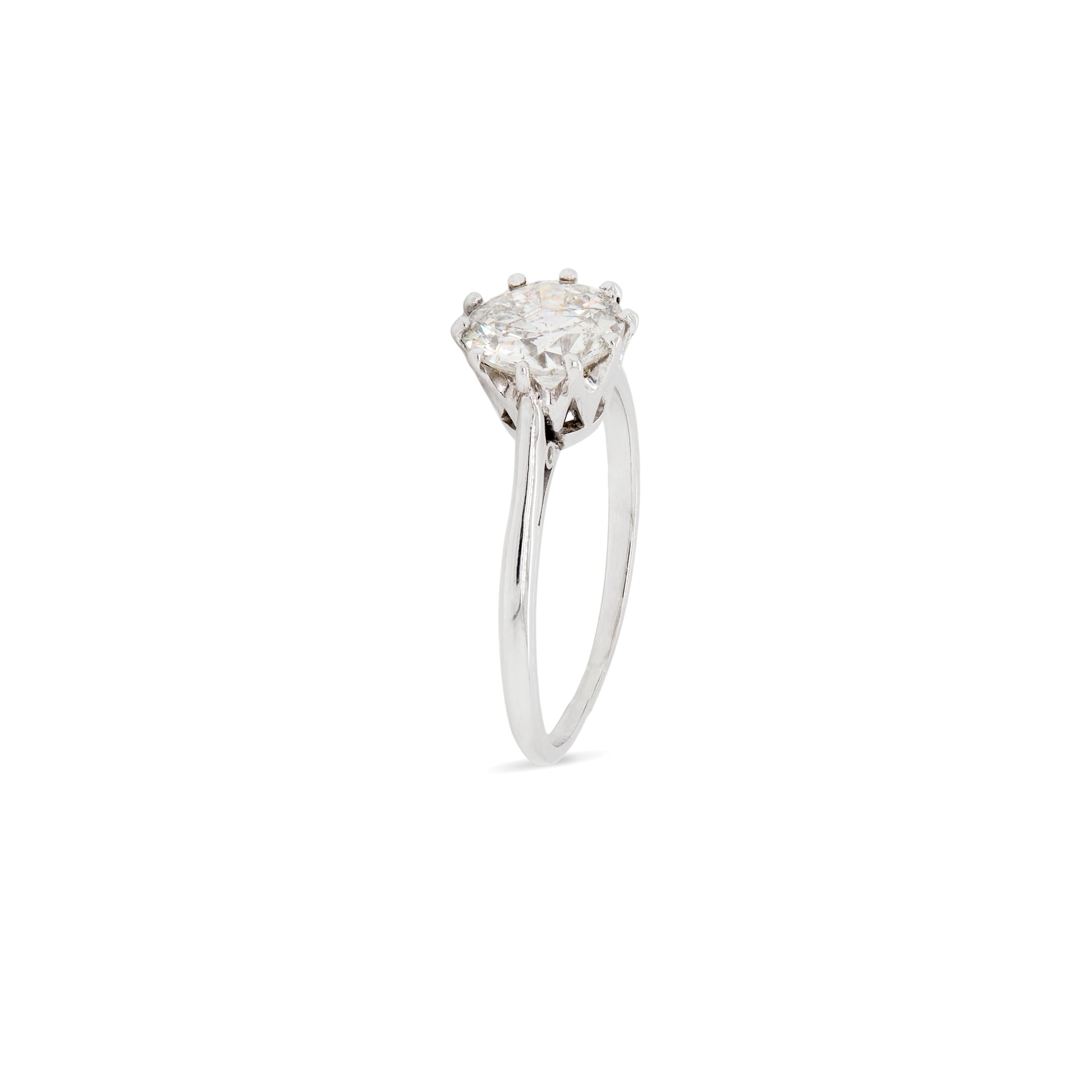 Taking centerstage is an incredible 1.65ct old European cut diamond, masterfully mounted in a delicate eight claw, open back setting.