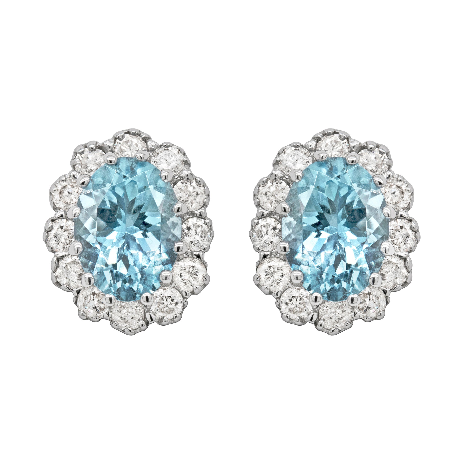 1.98 Carat Aquamarine and Diamond 18 Carat White Gold Cluster Stud Earrings