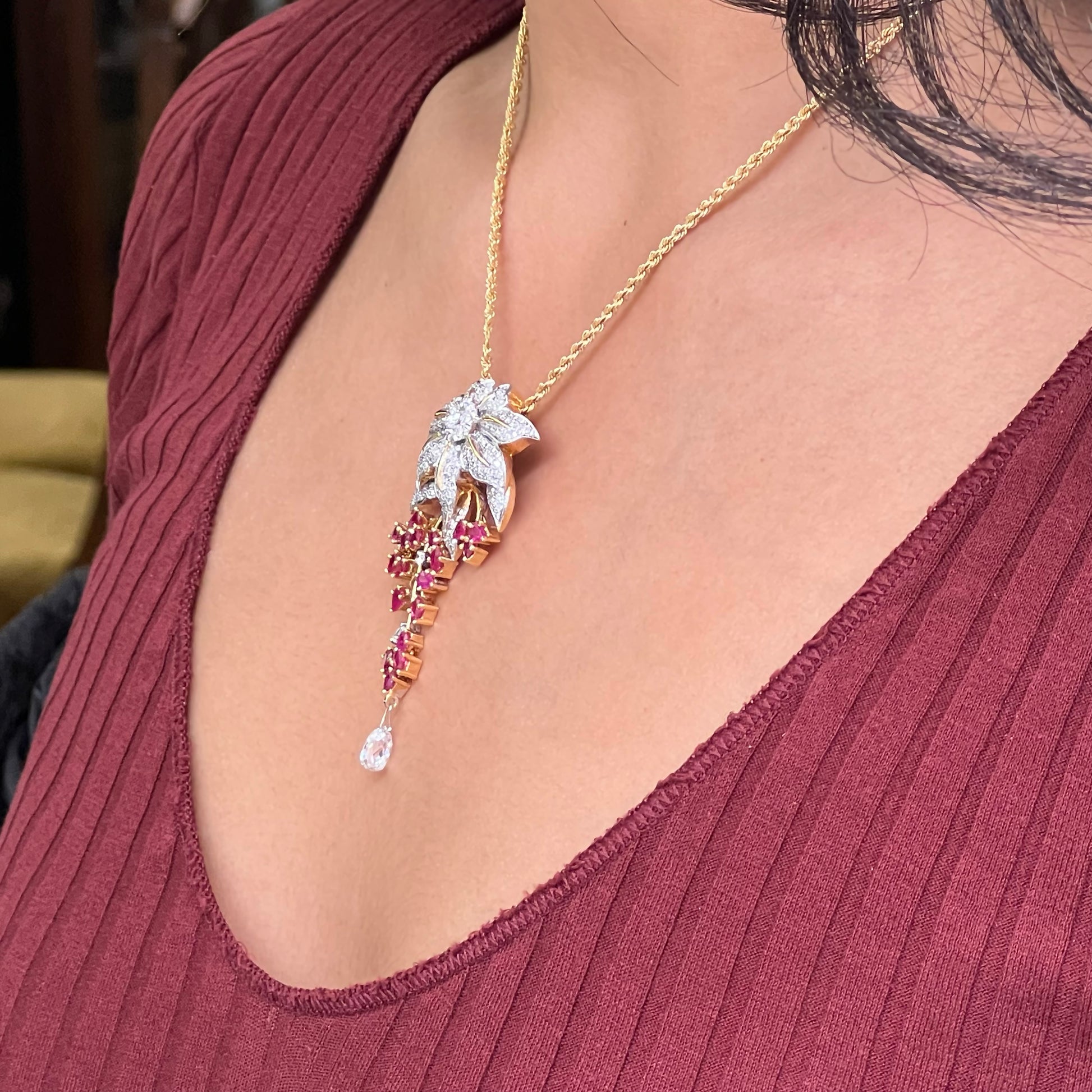 3.43ct Diamond and Ruby 18 Carat White & Yellow Gold Cascade Floral Pendant