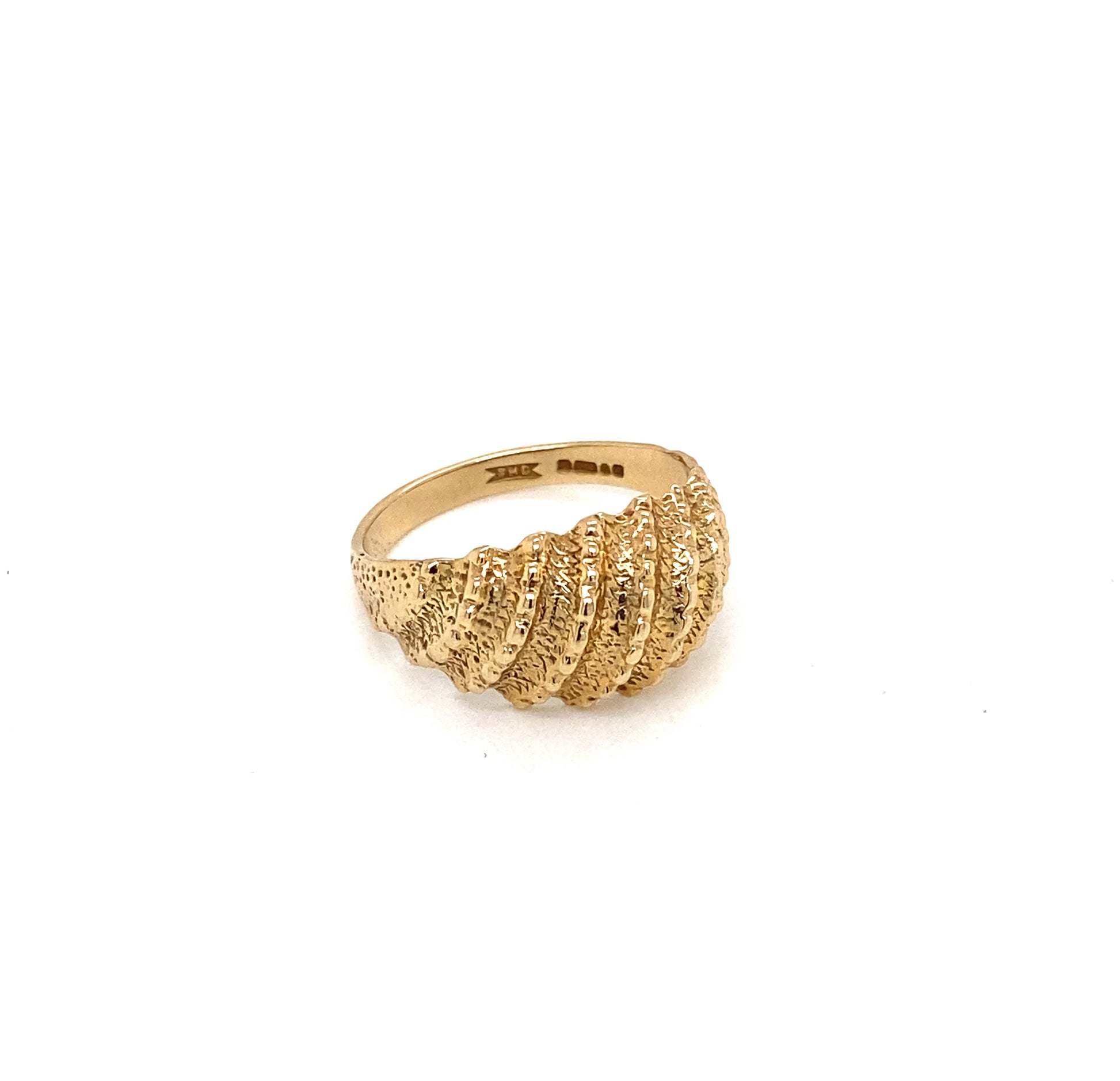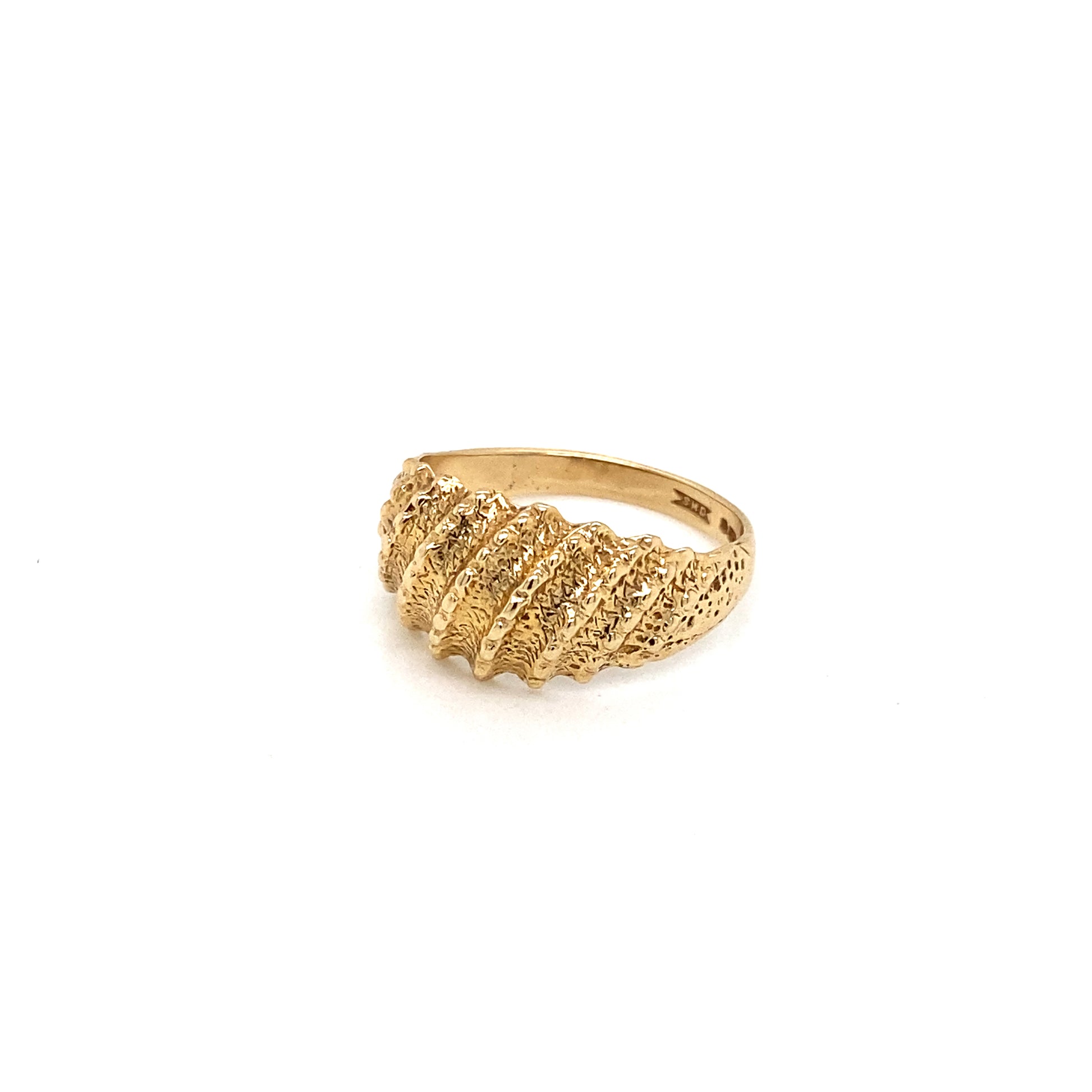This gorgeous 1980s 9ct yellow gold vintage ring is finished with a shell-like effect, and is the perfect piece for everyday wear.