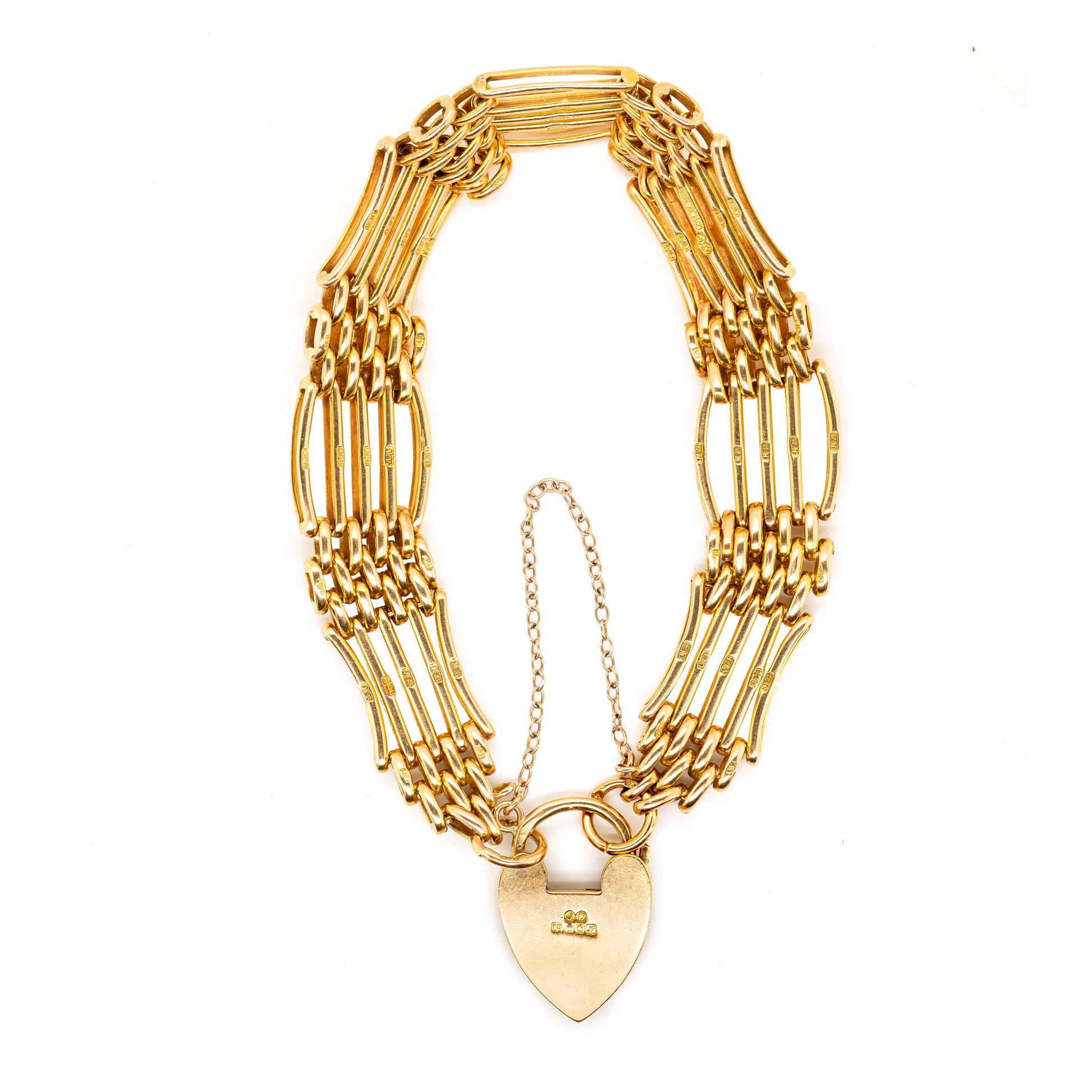 Antique 18 Carat Yellow Gold Heart Padlock Gate Bracelet, 1913