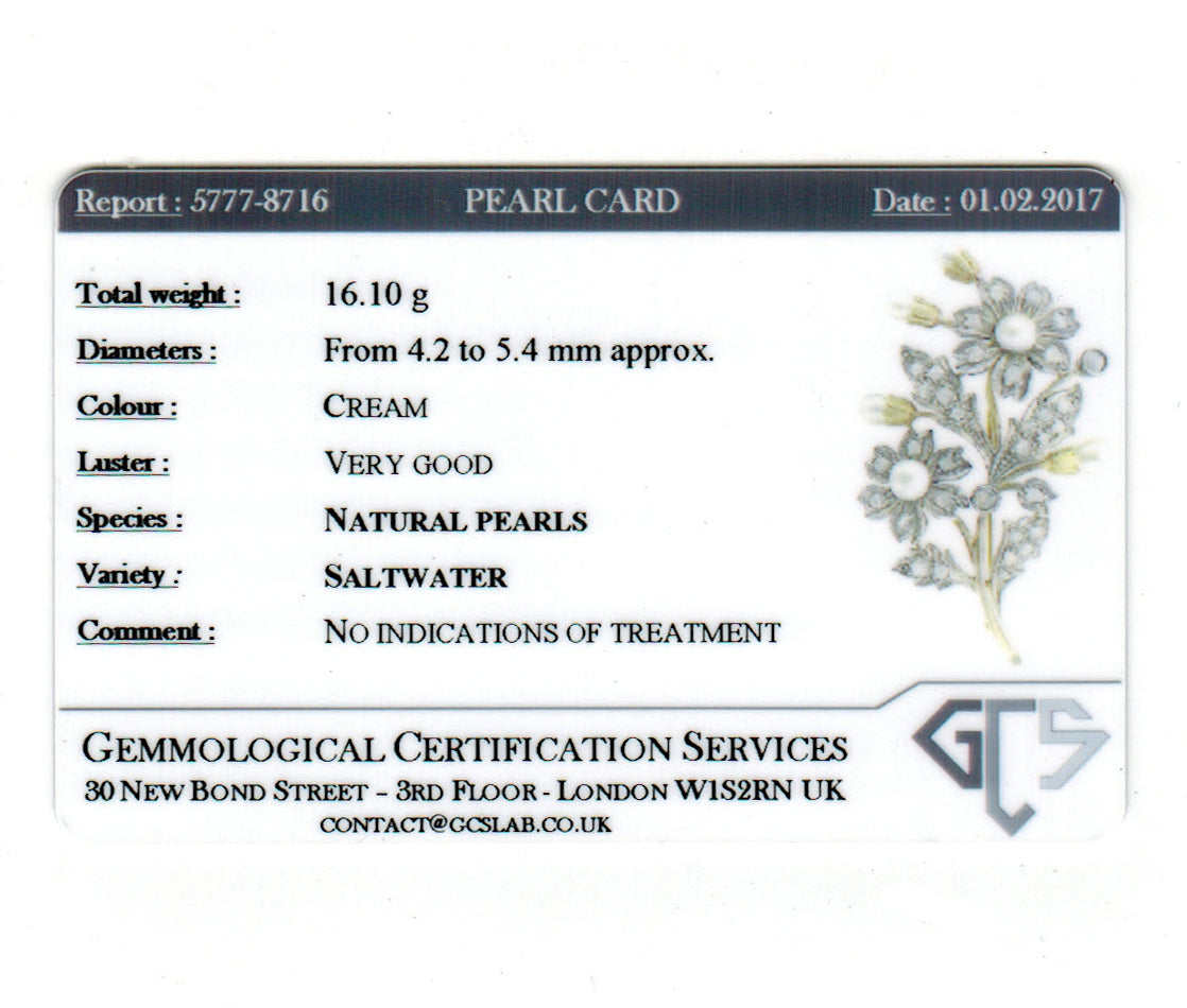 This gorgeous Victorian brooch has been crafted in silver on gold, typical of its period. The floral designed piece is beautifully set with 6 natural Saltwater pearls measuring between 4.2 - 5.4mm, decorated with a cluster of approximately 2.00 carats of rose cut diamonds. The brooch measures 5.7cm in length, 3.6cm in width and weighs 16.10 grams.