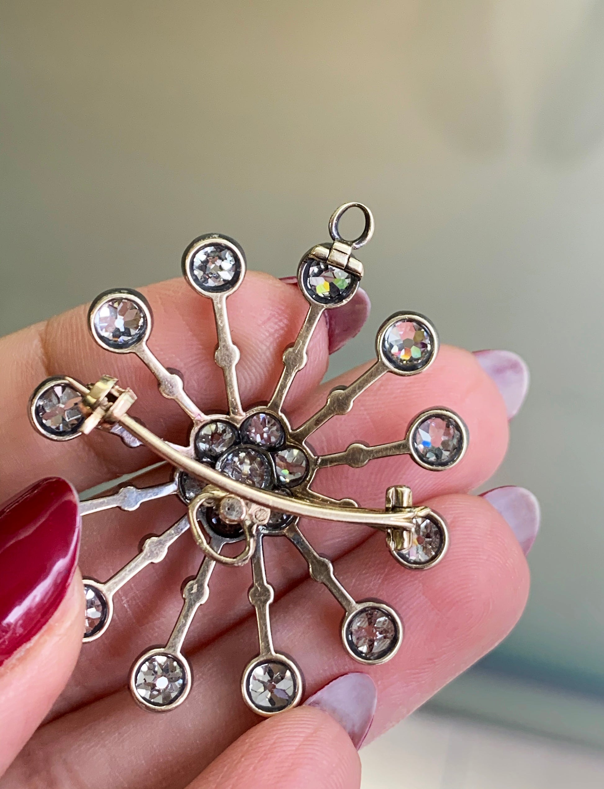 Antique Old Mine Cut Diamond Silver on Gold Brooch and Pendant, Circa 1880