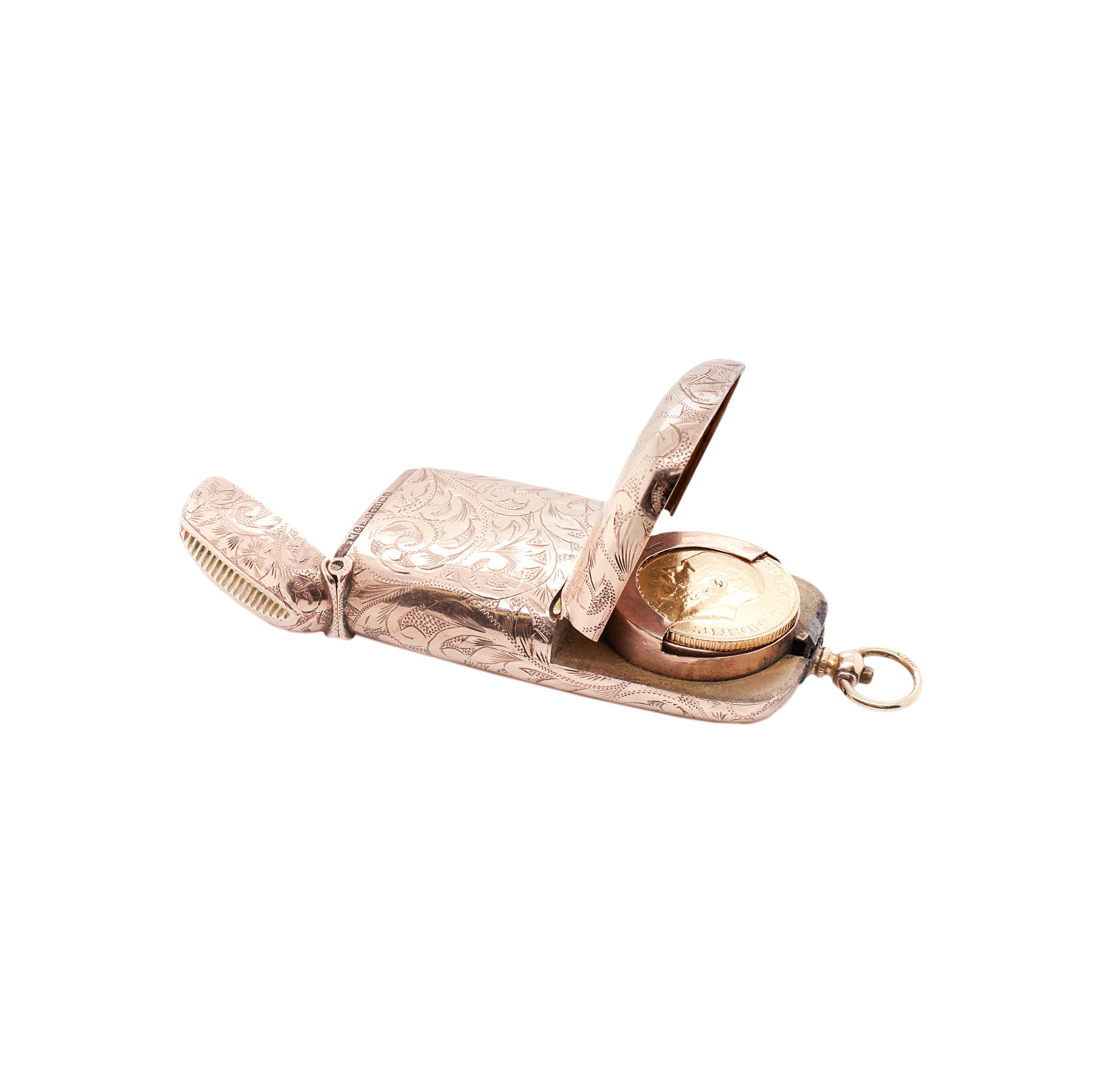 Antique Engraved Vesta Case & Sovereign Coin Holder in 9 Carat Rose Gold, 1900