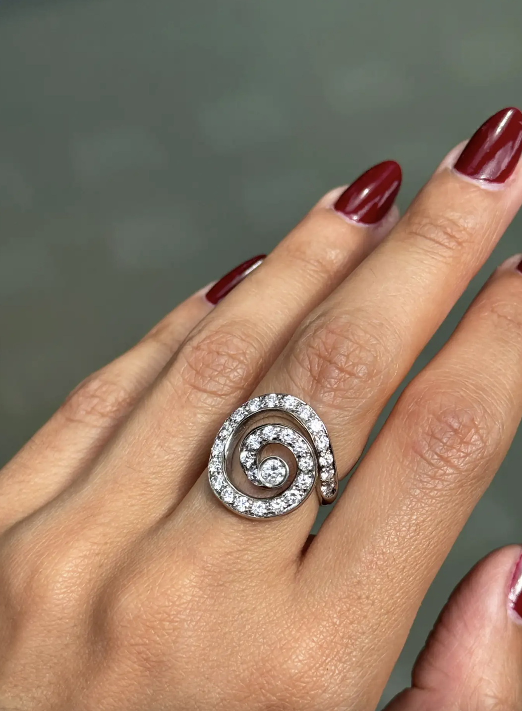 Asprey Diamond and 18 Carat White Gold Swirl Cocktail Ring