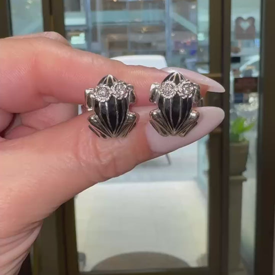 Black Enamel and Diamond 18 Carat White Gold Frog Cufflinks