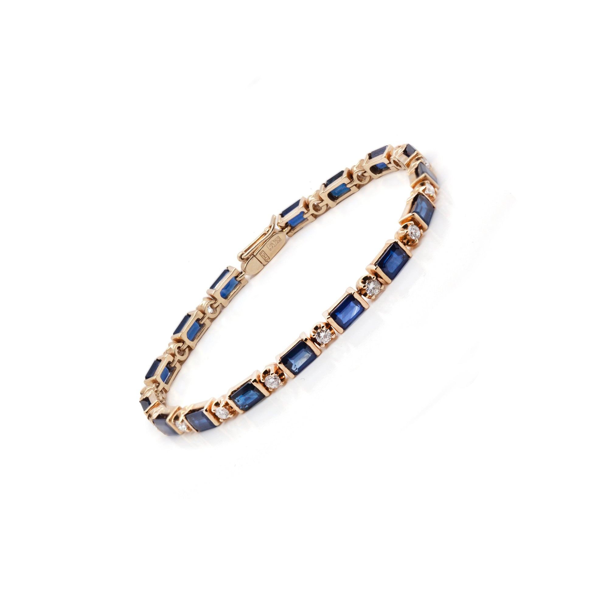 Step into the luxurious world of fine jewellery with this exquisite sapphire and diamond tennis bracelet, expertly crafted in high polish 18 carat yellow gold.