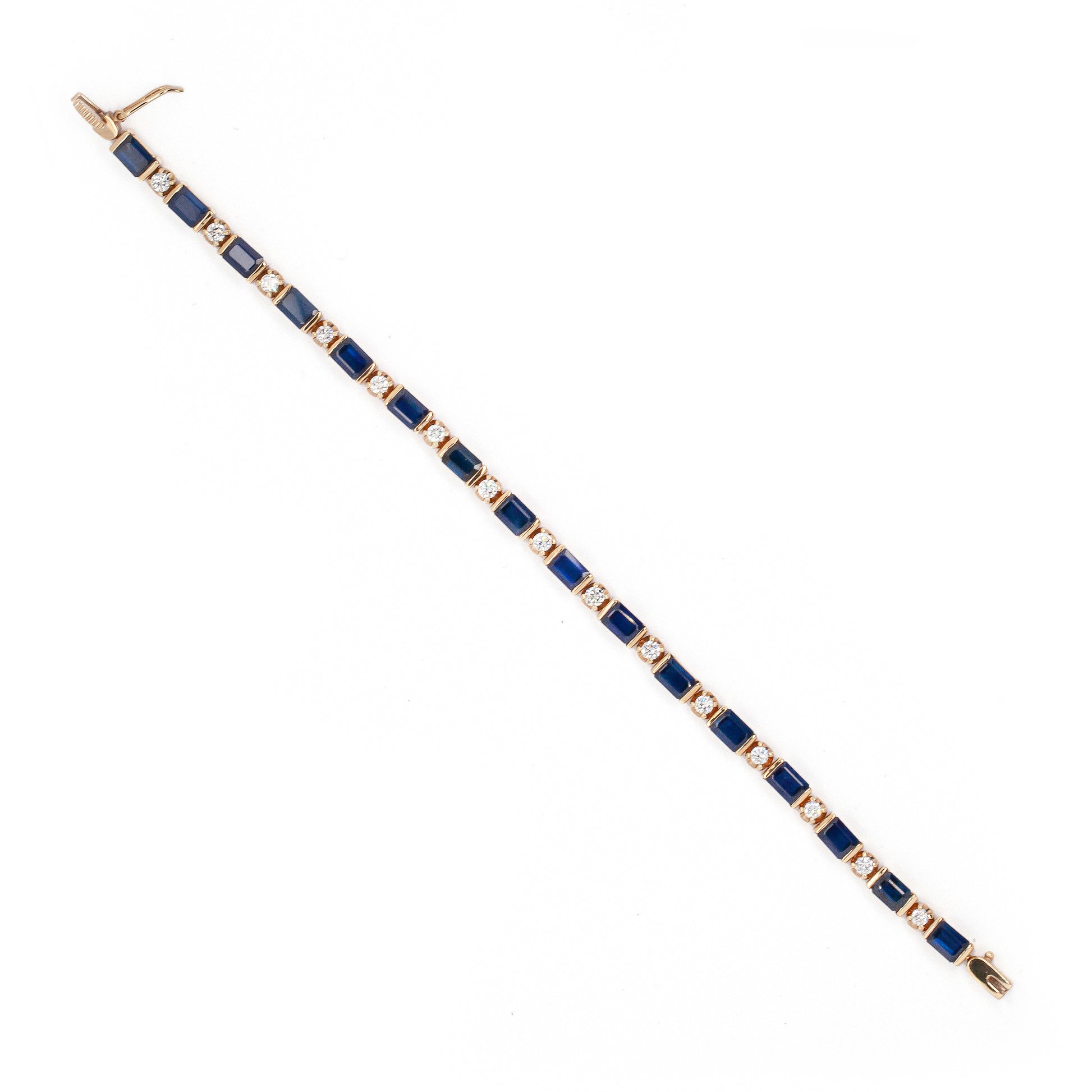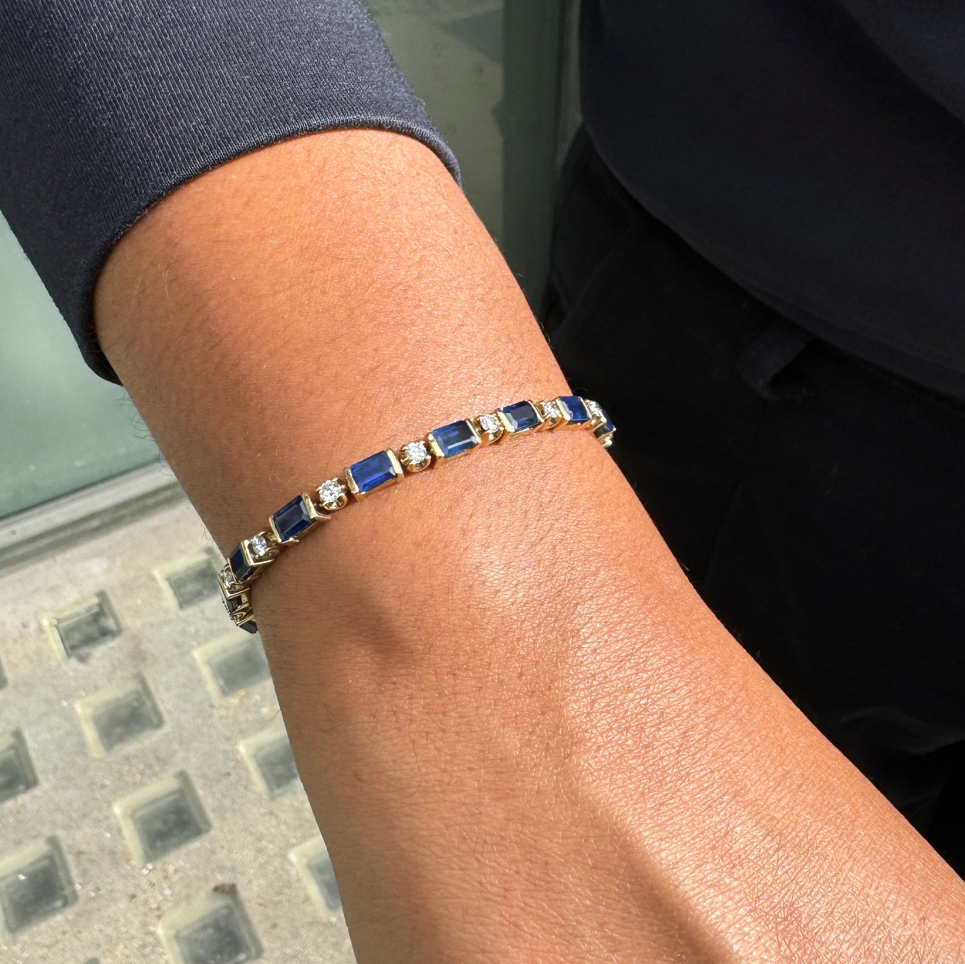 Blue Sapphire and Diamond 18 Carat Yellow Gold Tennis Bracelet