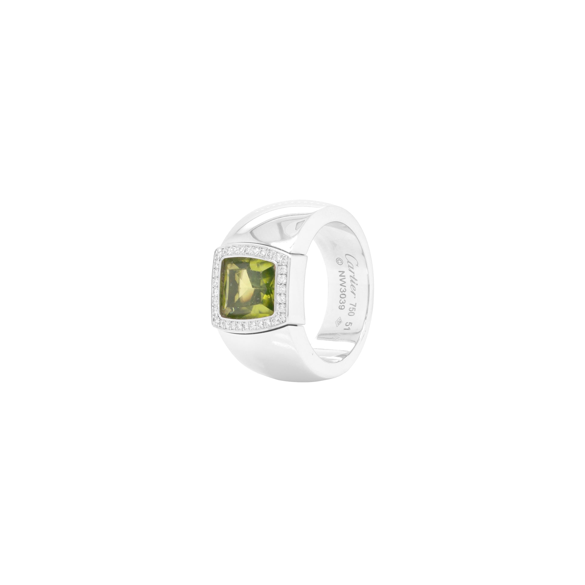 Cartier La Dona Diamond and Peridot 18 Carat White Gold Dress Ring