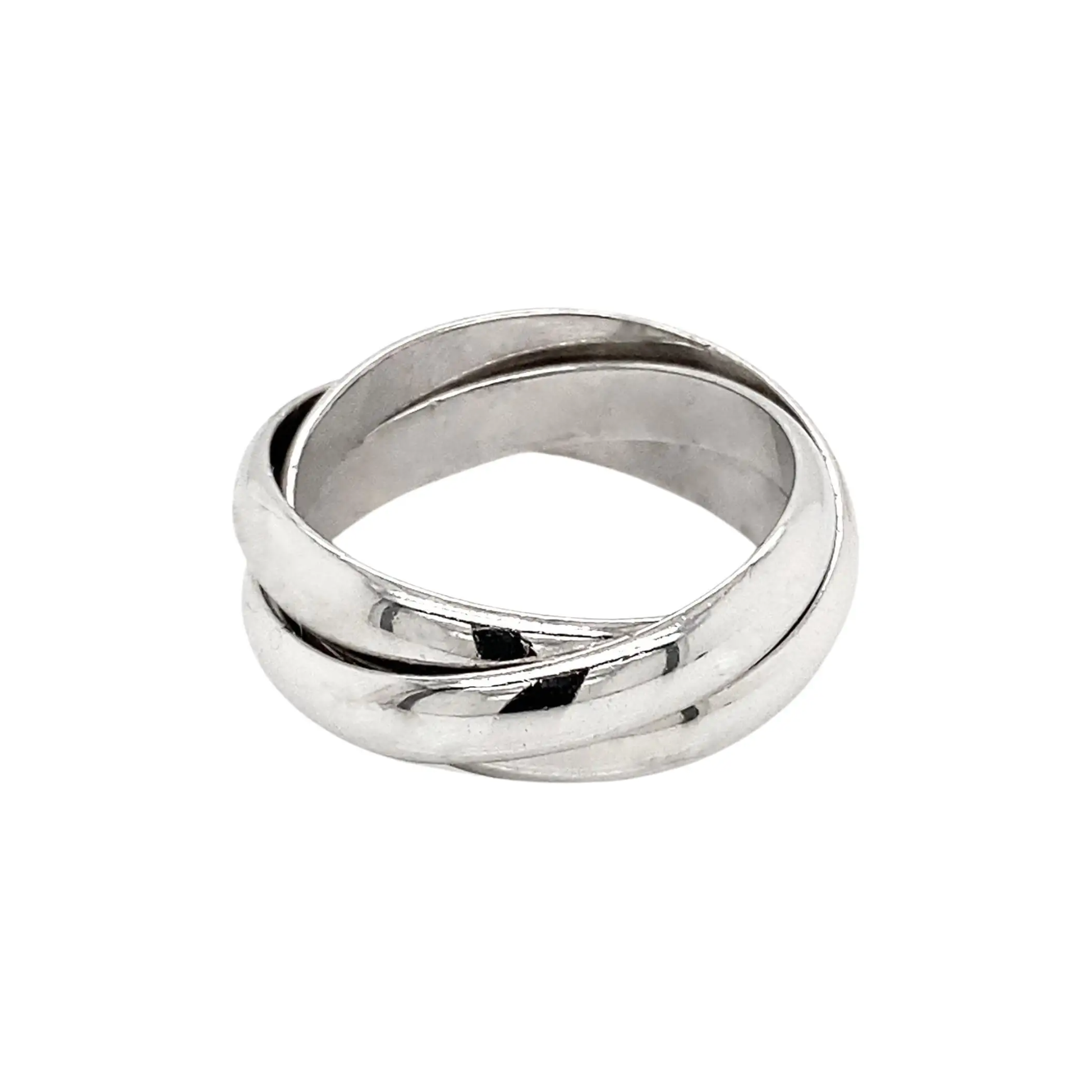 The wonderful ring is composed of 3 elegant dome-shaped bands of approximately 4mm each, intertwined to create an eternity effect.