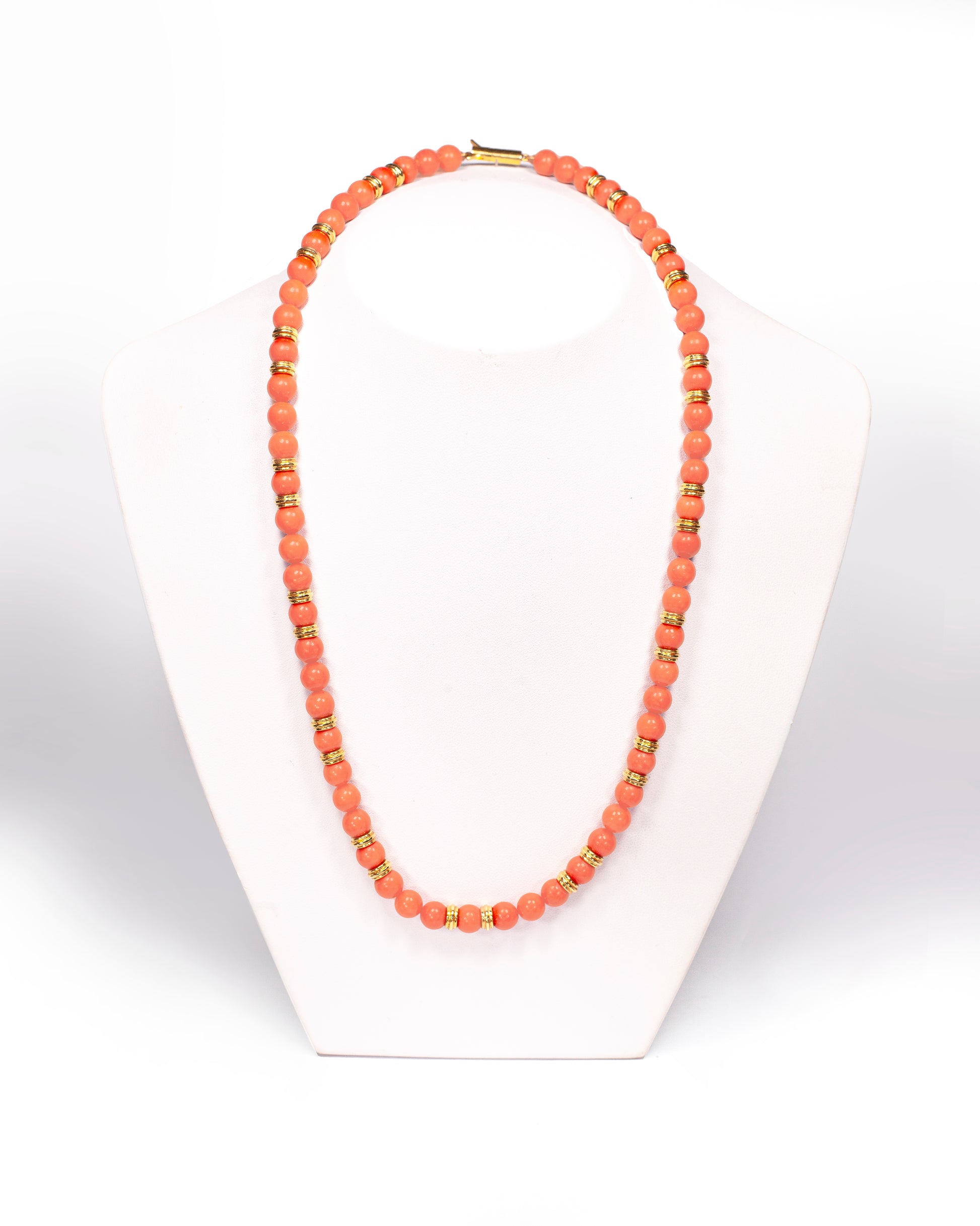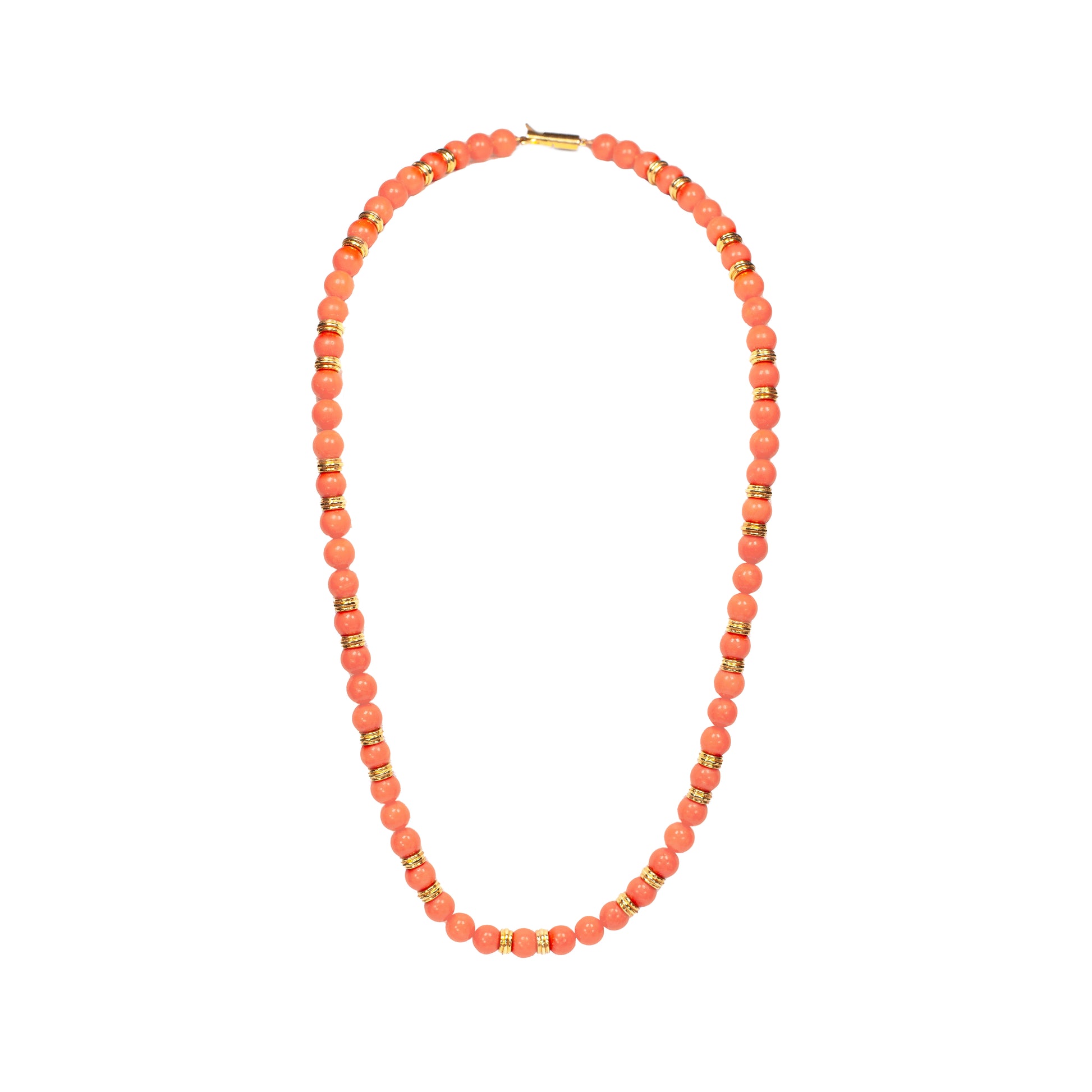 Coral and 18 Carat Yellow Gold Bead Necklace