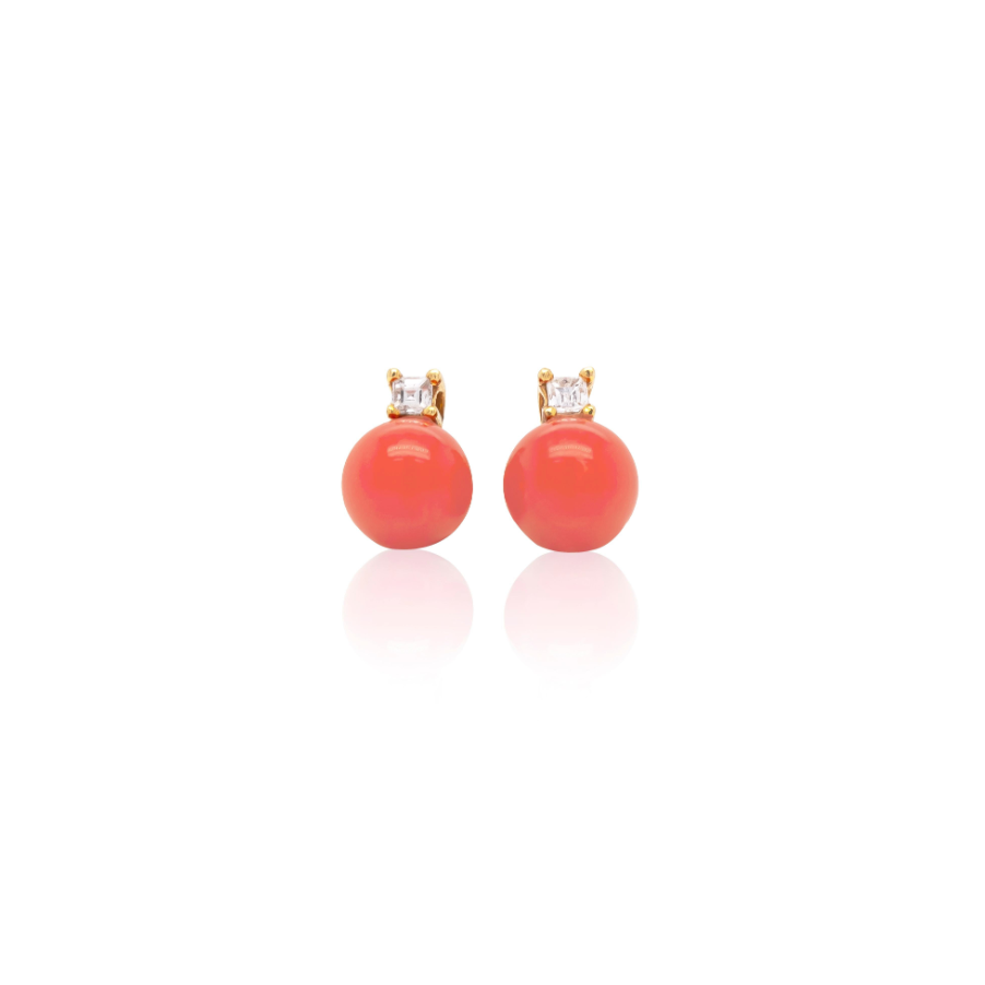Coral and Diamond 18 Carat Yellow Gold Stud Earrings