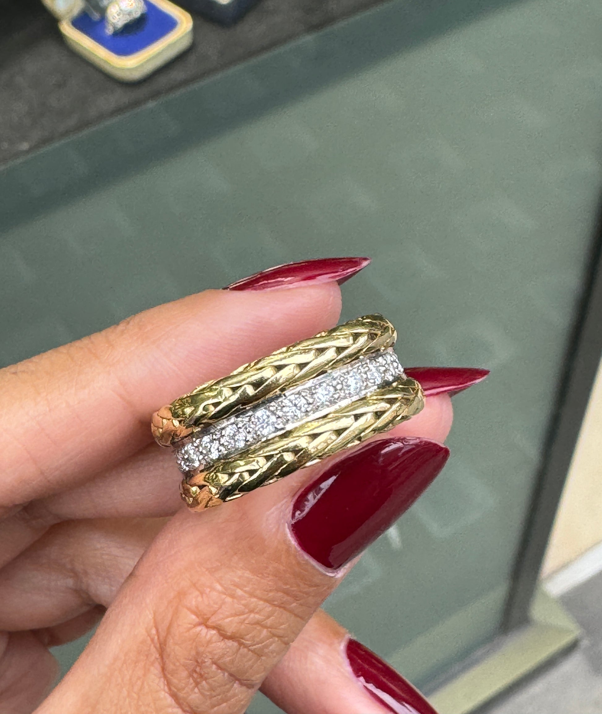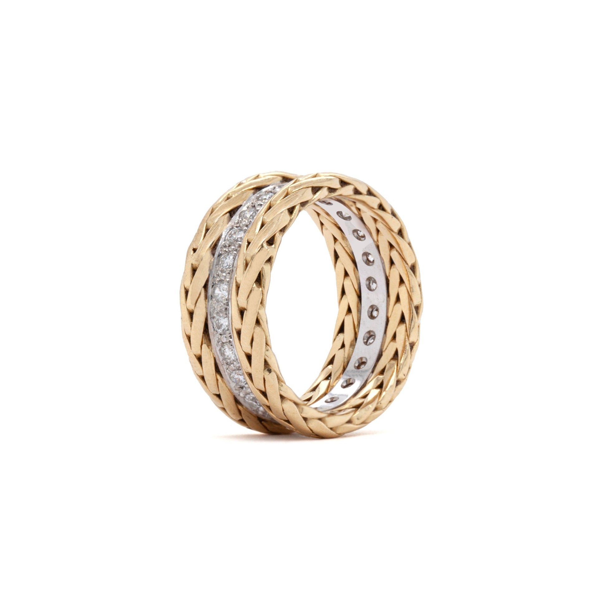 Diamond 18 Carat White and Yellow Gold Fancy Braided Wide Band Ring