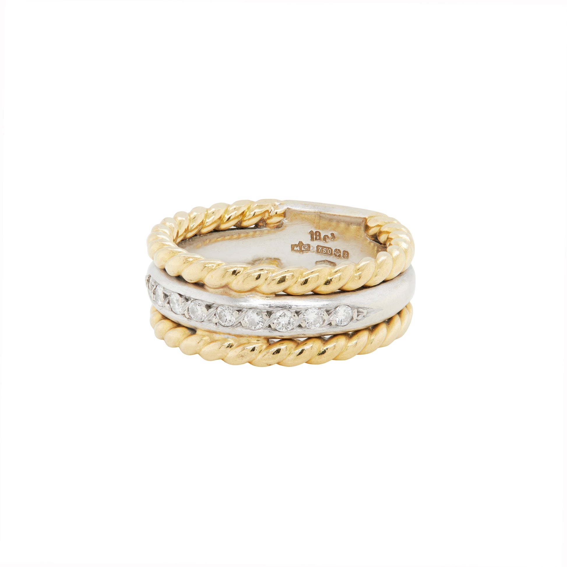 Diamond 18 Carat Yellow and White Gold Rope Wide Band Ring