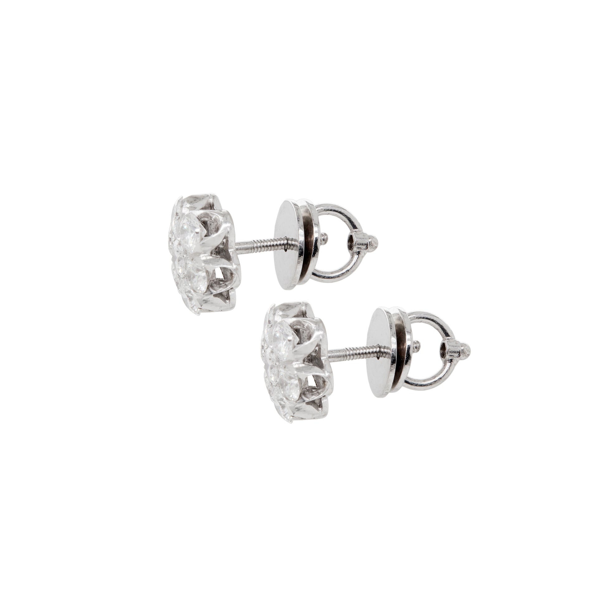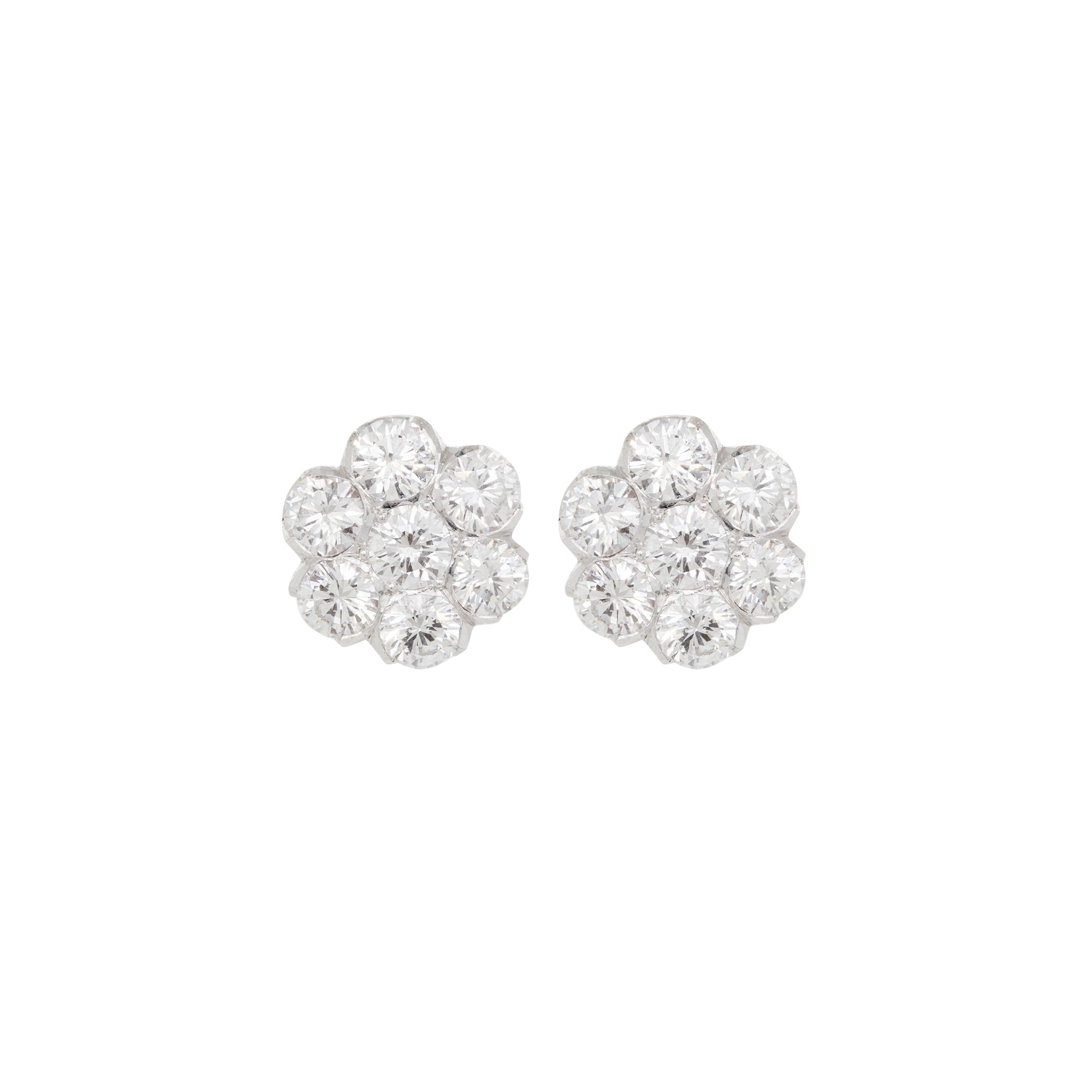 Diamond and 18 Carat White Gold Floral Cluster Stud Earrings