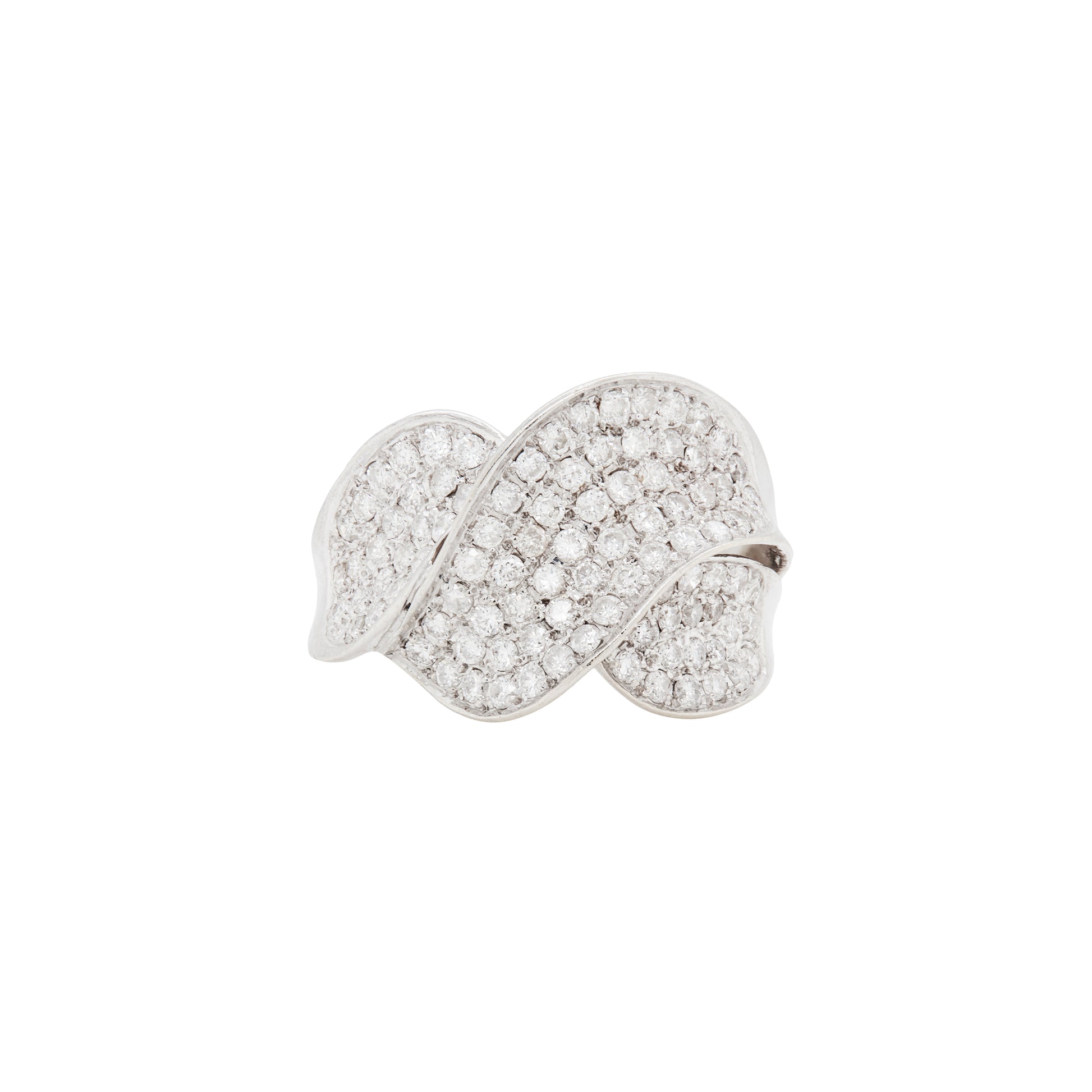 This piece features an elegant wave design with a fluid, sculptural look, pavé set with approximately 2.00ct of fine quality round brilliant cut diamonds, catching the light beautifully from every angle.