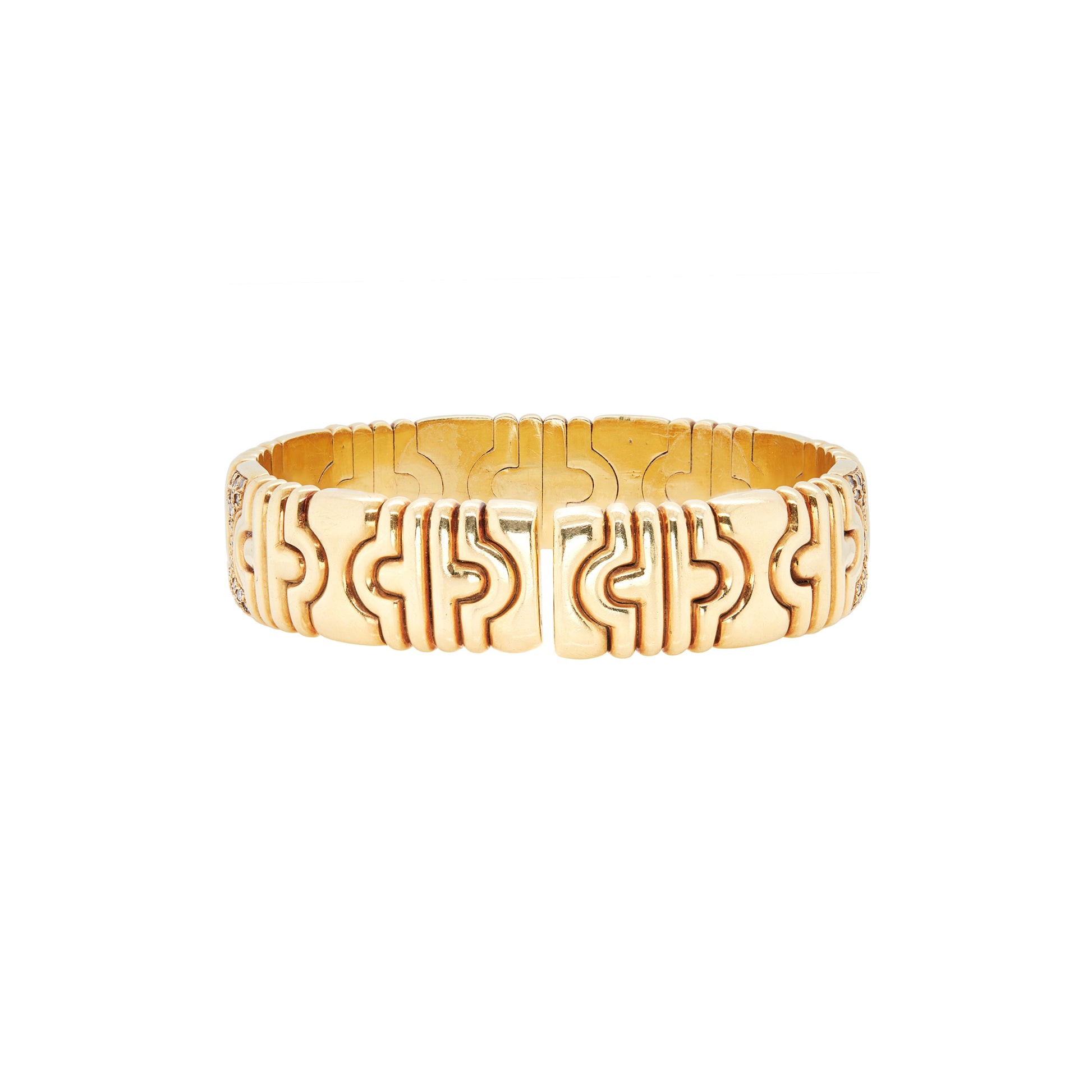 Diamond and 18 Carat Yellow Gold Statement Flexible Bangle Bracelet