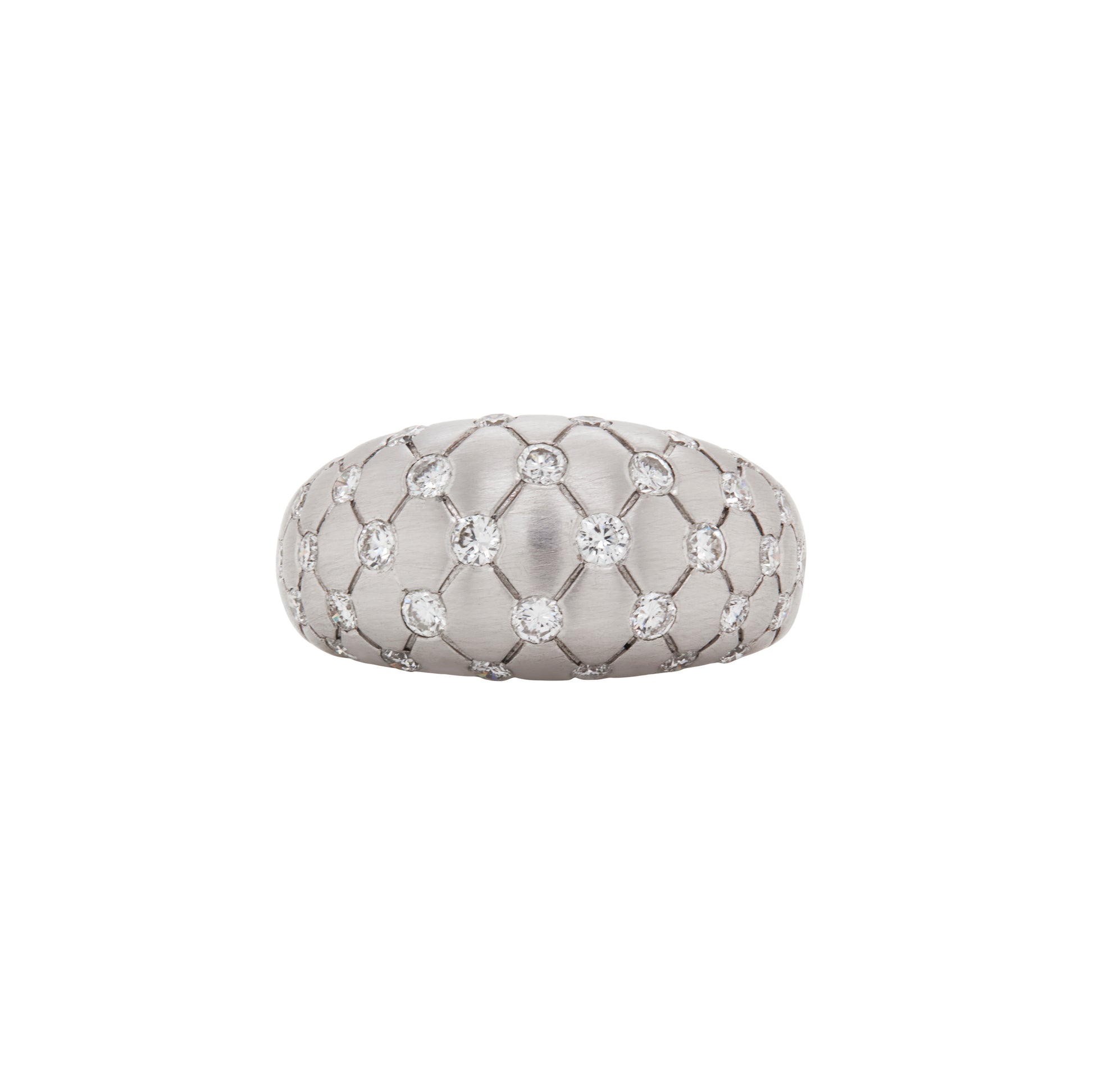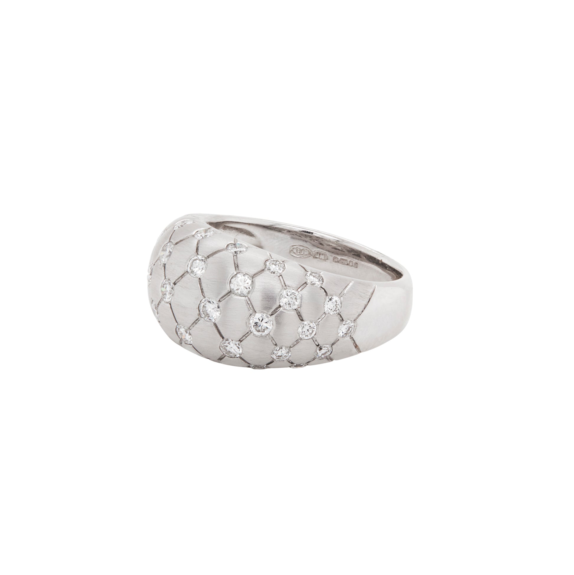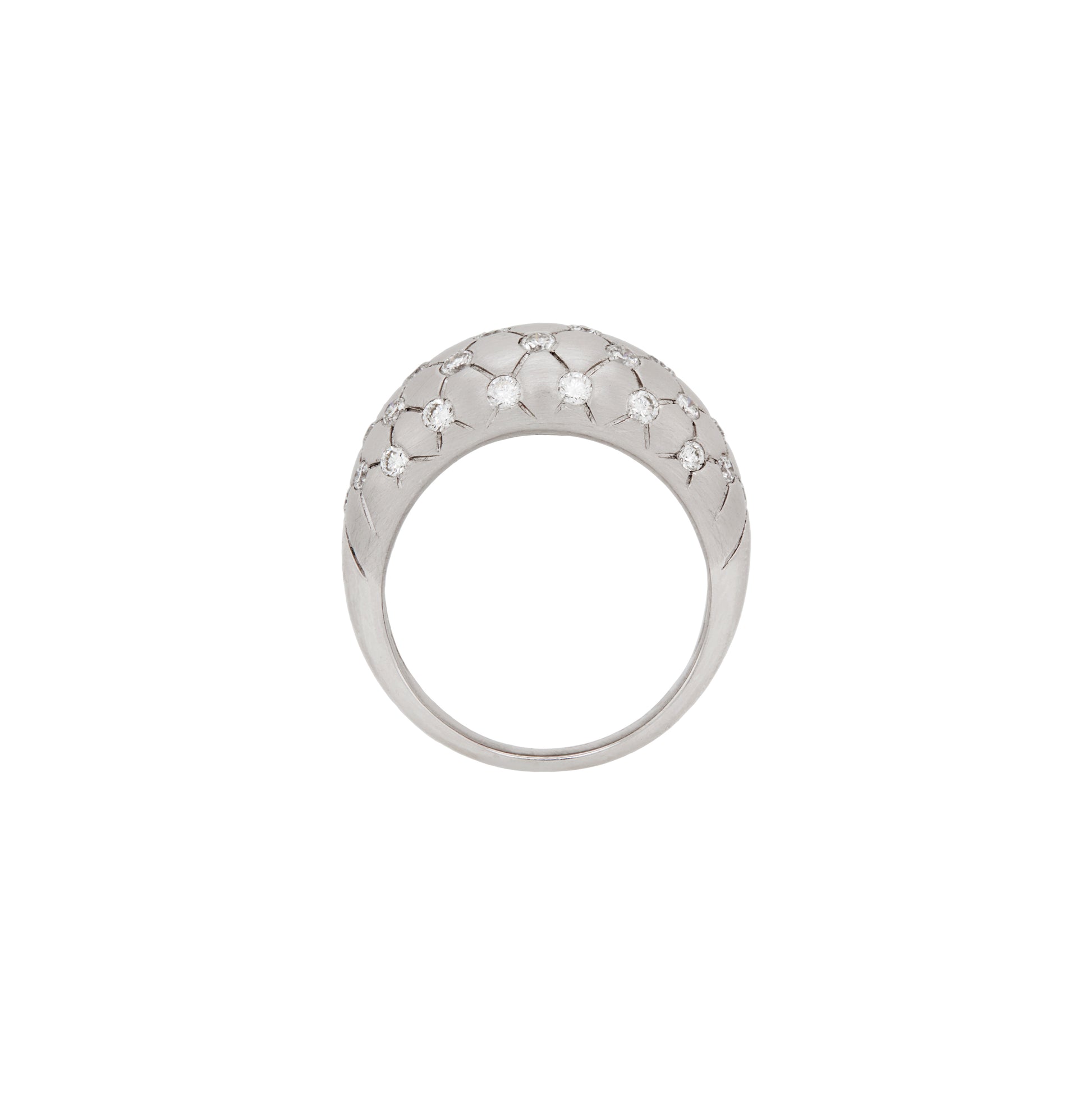 Diamond and Brushed 18 Carat White Gold Quilted Tapered Dome Ring