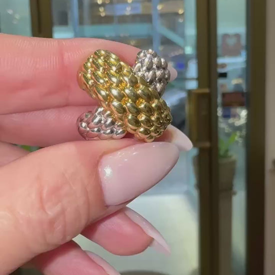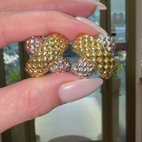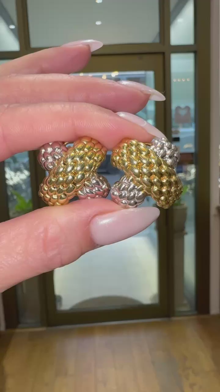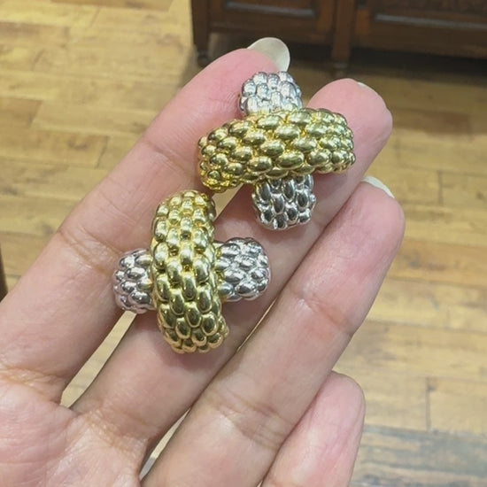FOPE 18 Carat White & Yellow Gold Two-Tone Woven 'X' Clip-On Earrings