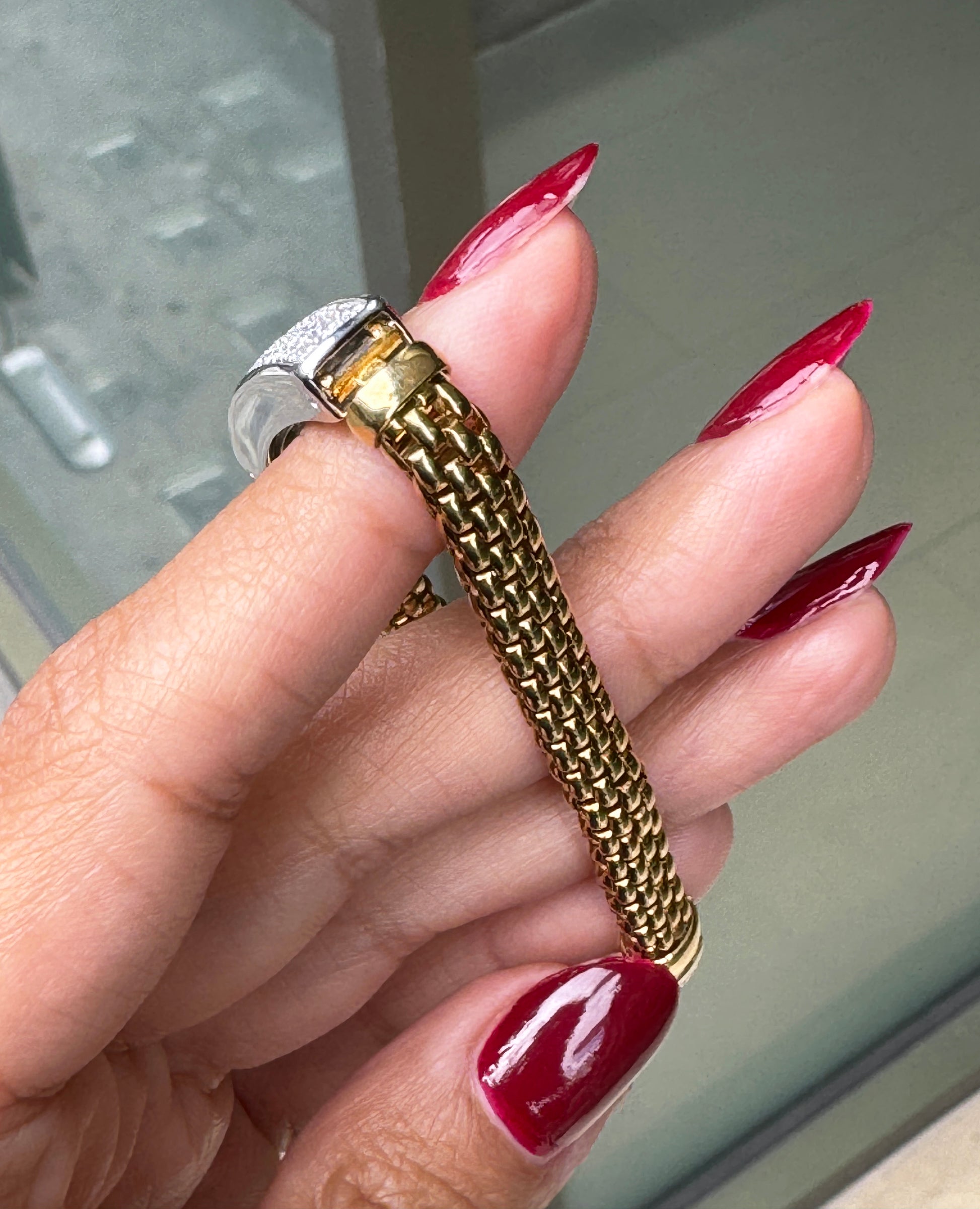 “Women’s bracelets are the jewelled protagonists of FOPE’s success in the world. The gold link, with its softness and recognisable design, becomes a recurring theme that is declined in ever new thicknesses and shapes.” - FOPE