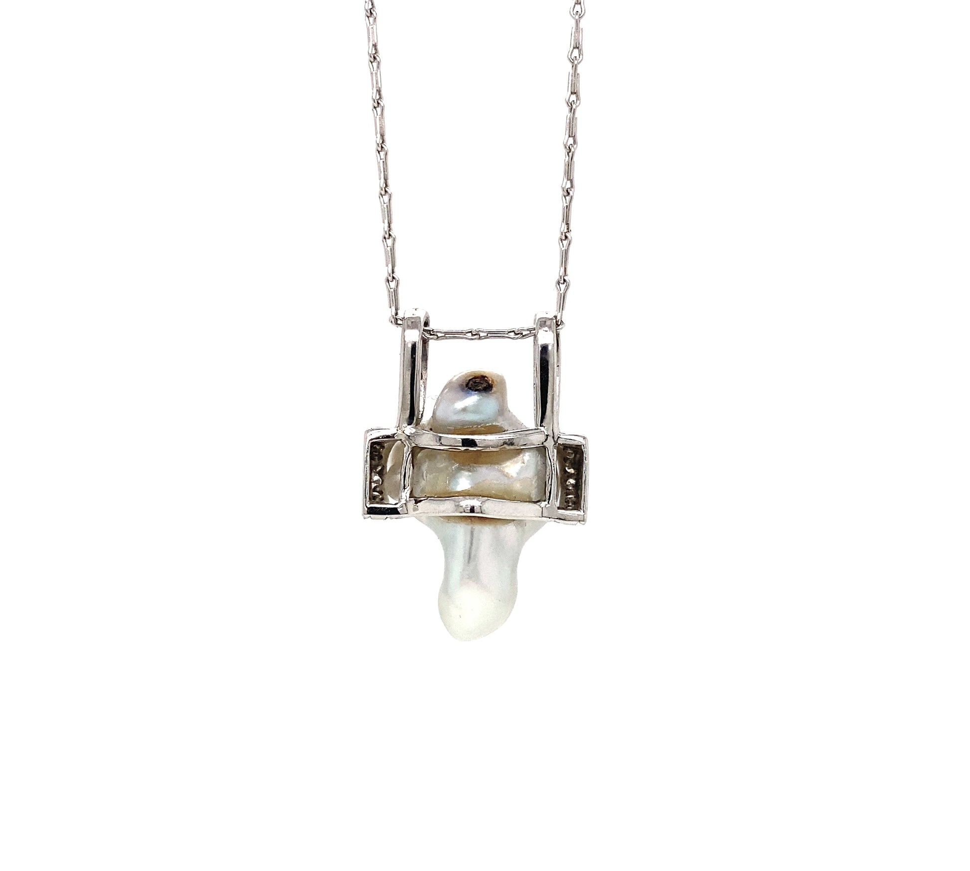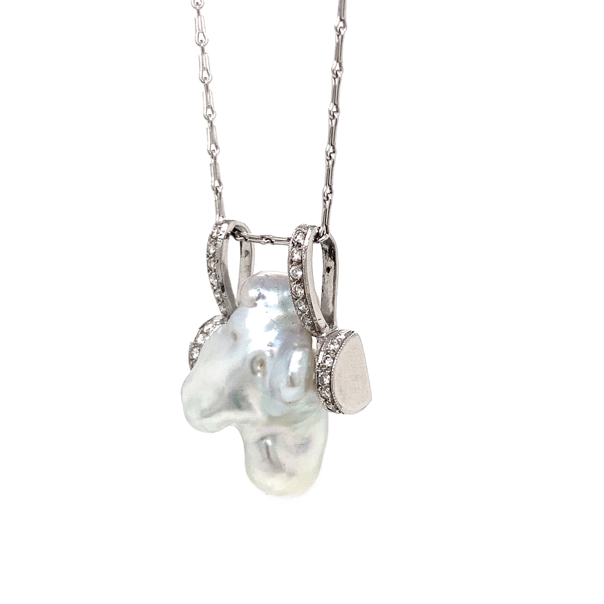 Large Baroque Cultured Pearl & Diamond 18 Carat White Gold Pendant Necklace
