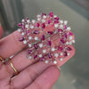 This wonderful one of a kind brooch is beautifully inlaid with a mix of 29 marquise shaped rubies and 36 high quality round brilliant cut diamonds spread throughout it among the vibrant rubies. All the stones are perfectly claw set on an 18 carat white gold abstract open work base that gives this piece a sophisticated look. The rubies come to an approximate total weight of 4.00ct and the delicate diamonds to approximately 2.20ct combined. A truly eye catching piece that measures 5.0 x 4.6 cm and weighs 16.8 grams. Tested 18 carat white gold.