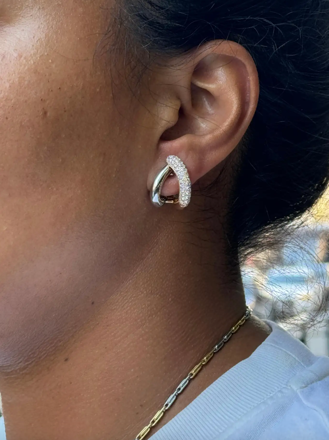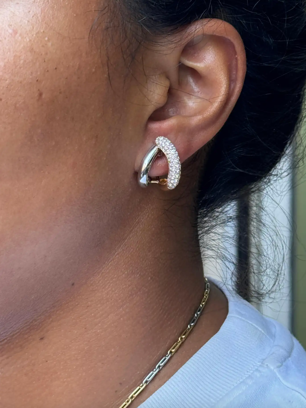 Seamlessly blending the cool elegance of white gold with the warm glow of rose gold, these modern earrings are a fantastic addition to any jewellery collection.