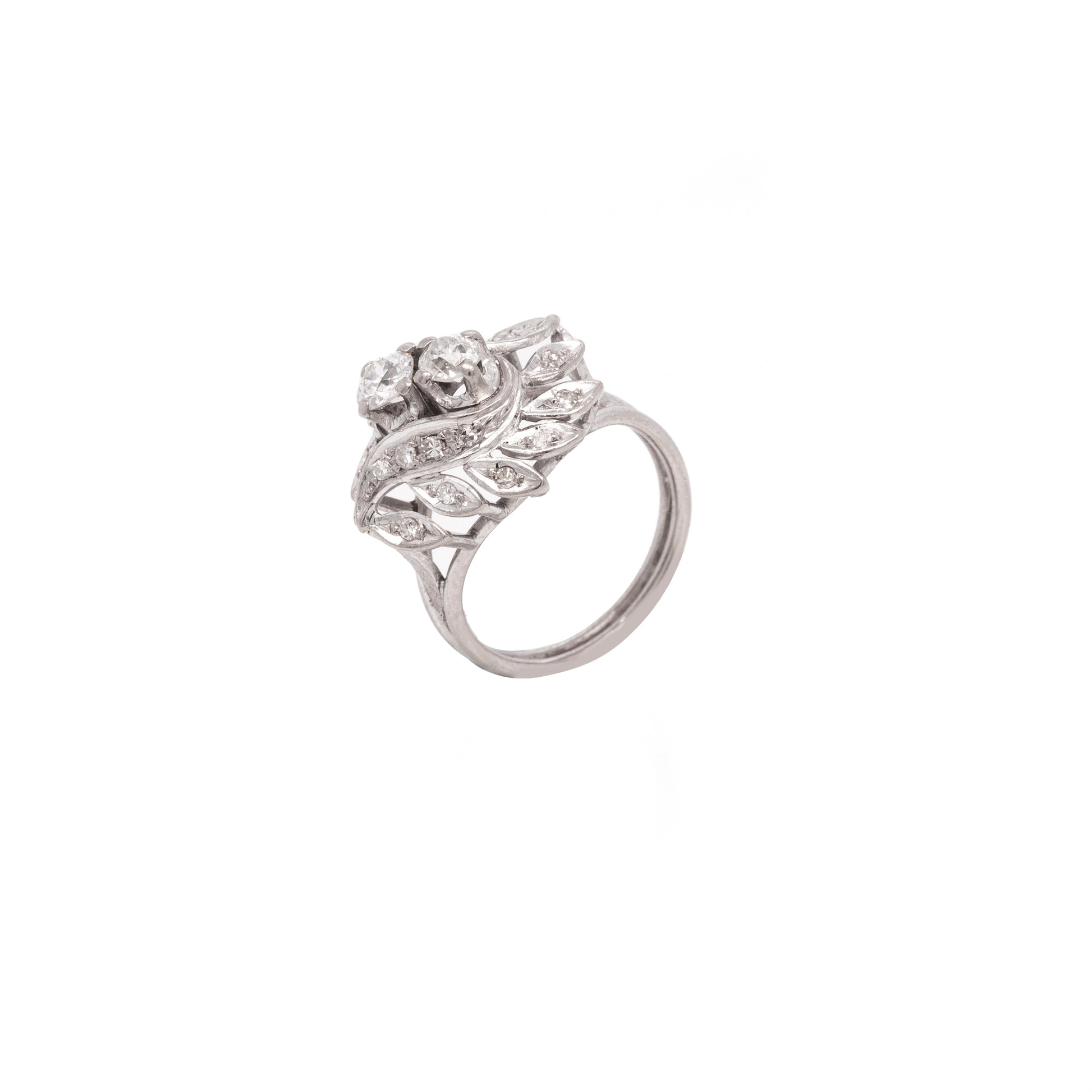 Old Cut Diamond 14 Carat White Gold Twist Leaf Design Cluster Dress Ring