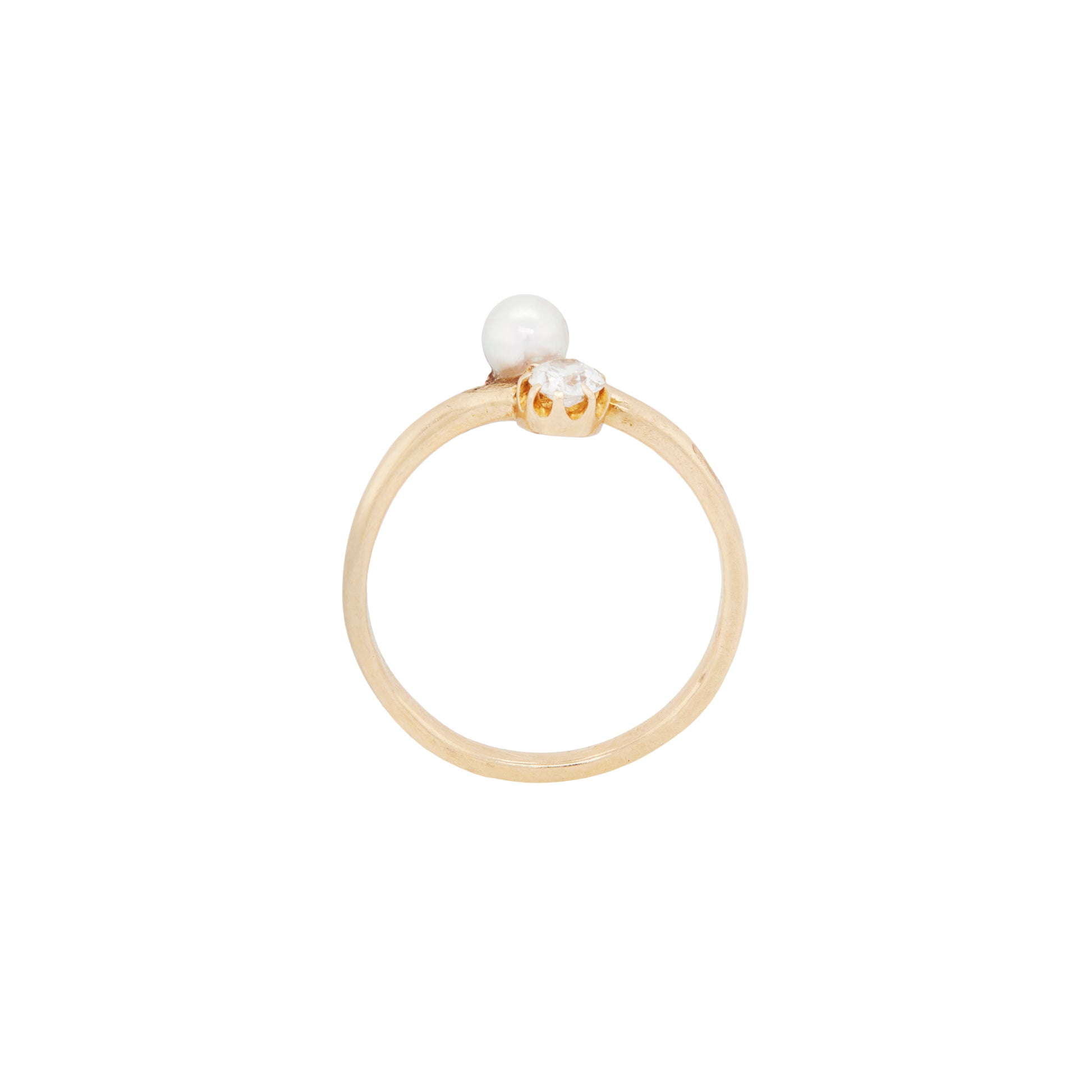Old Mine Cut Diamond and Pearl Toi Et Moi Edwardian Ring in 18 Carat Yellow Gold