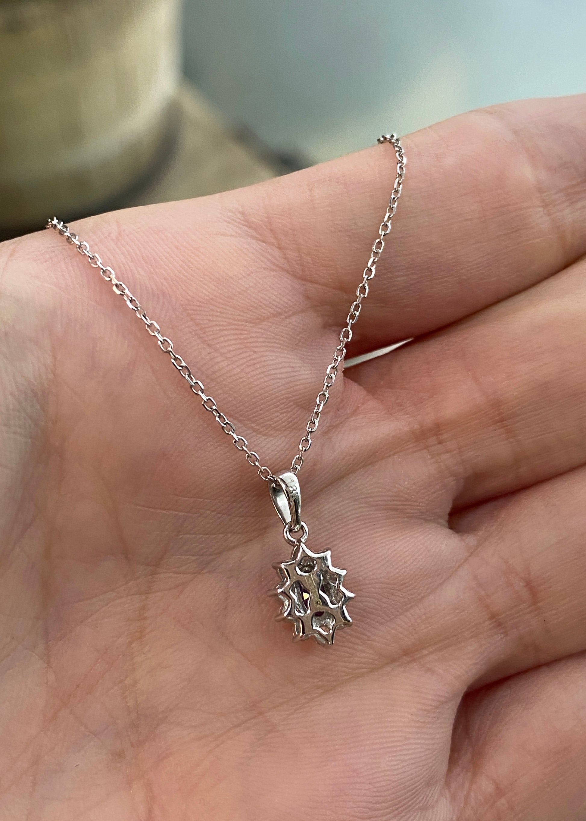 Together, the pendant and chain weigh 1.64 grams and are both stamped 750.