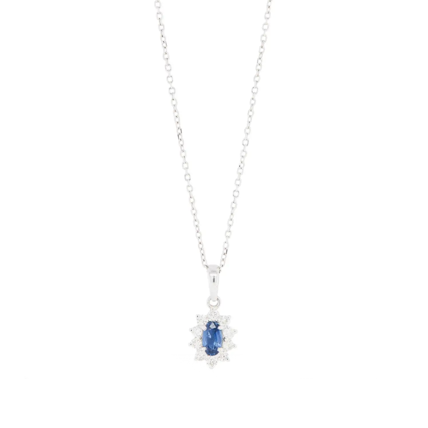 Oval Blue Sapphire and Diamond 18 Carat White Gold Necklace