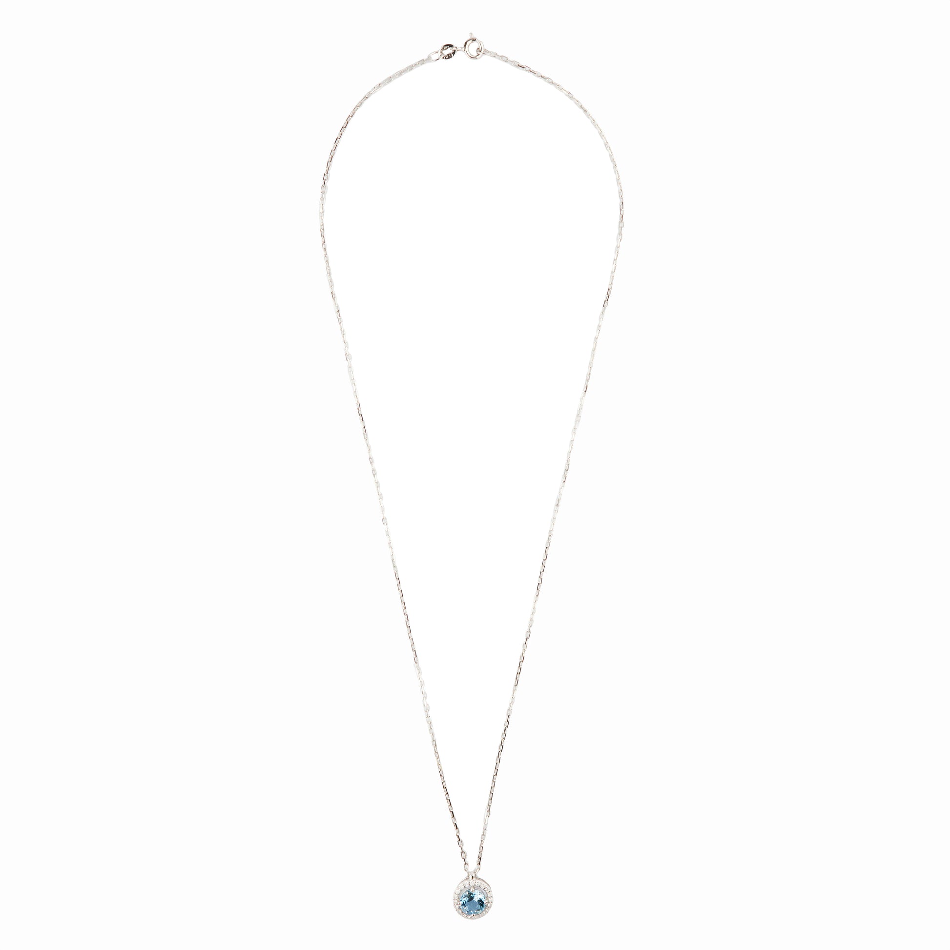 Round Aquamarine and Diamond Halo 18 Carat White Gold Cluster Pendant