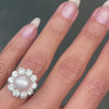 South Sea Pearl and Diamond 18 Carat White Gold Cluster Flower Engagement Ring
