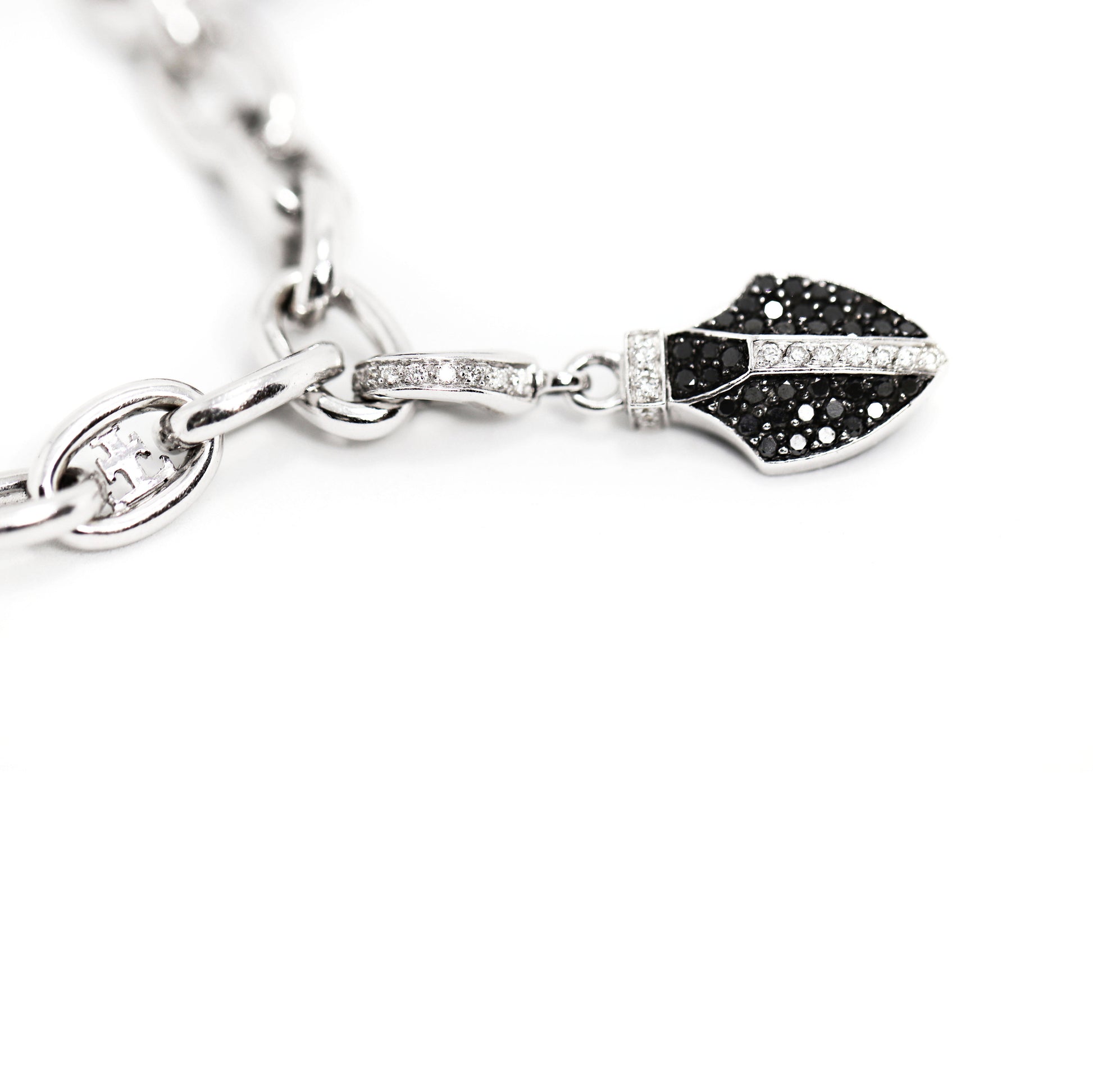 - 1 quiver charm pavé set with white and black round brilliant cut diamonds all mounted in 18ct white gold with a diamond set bail.