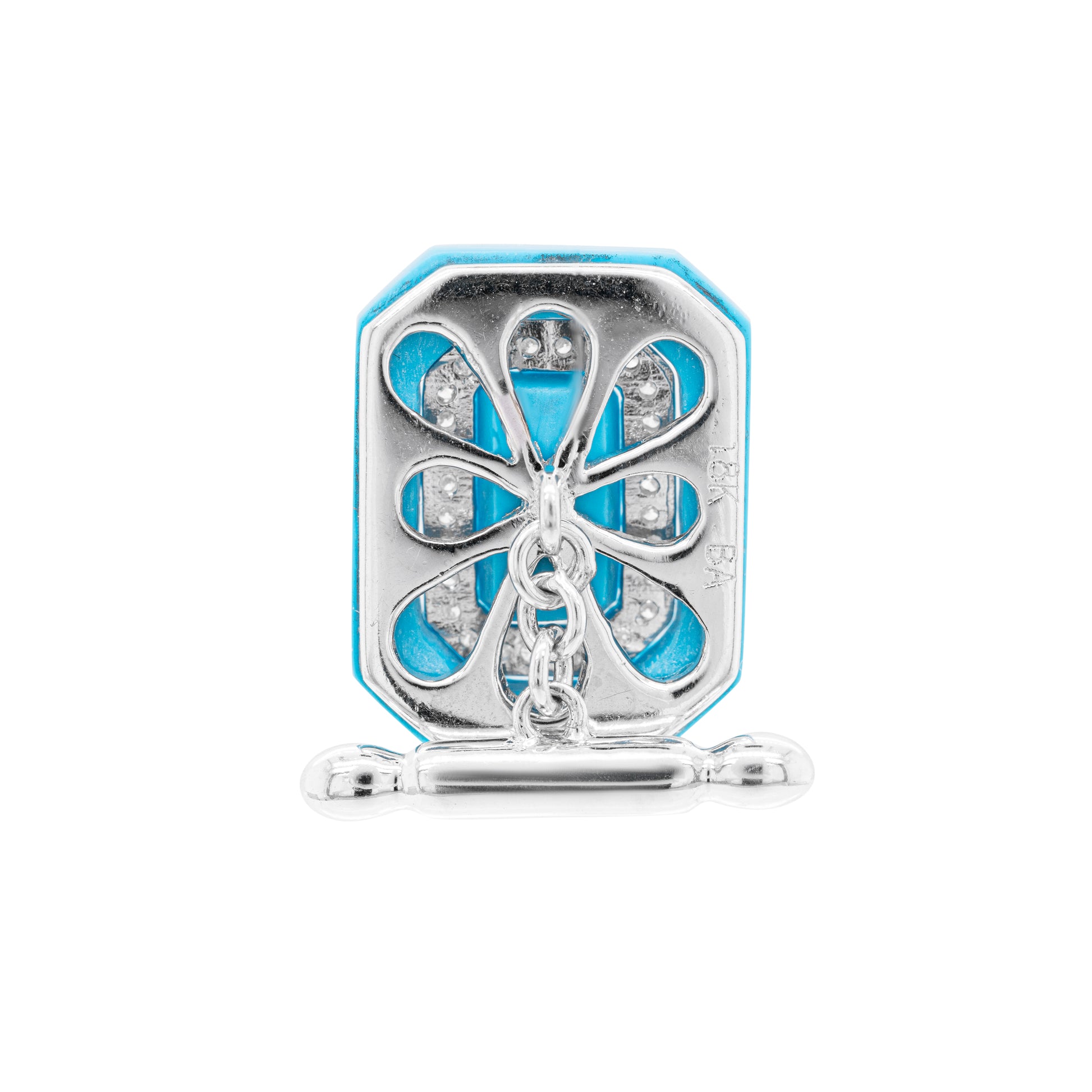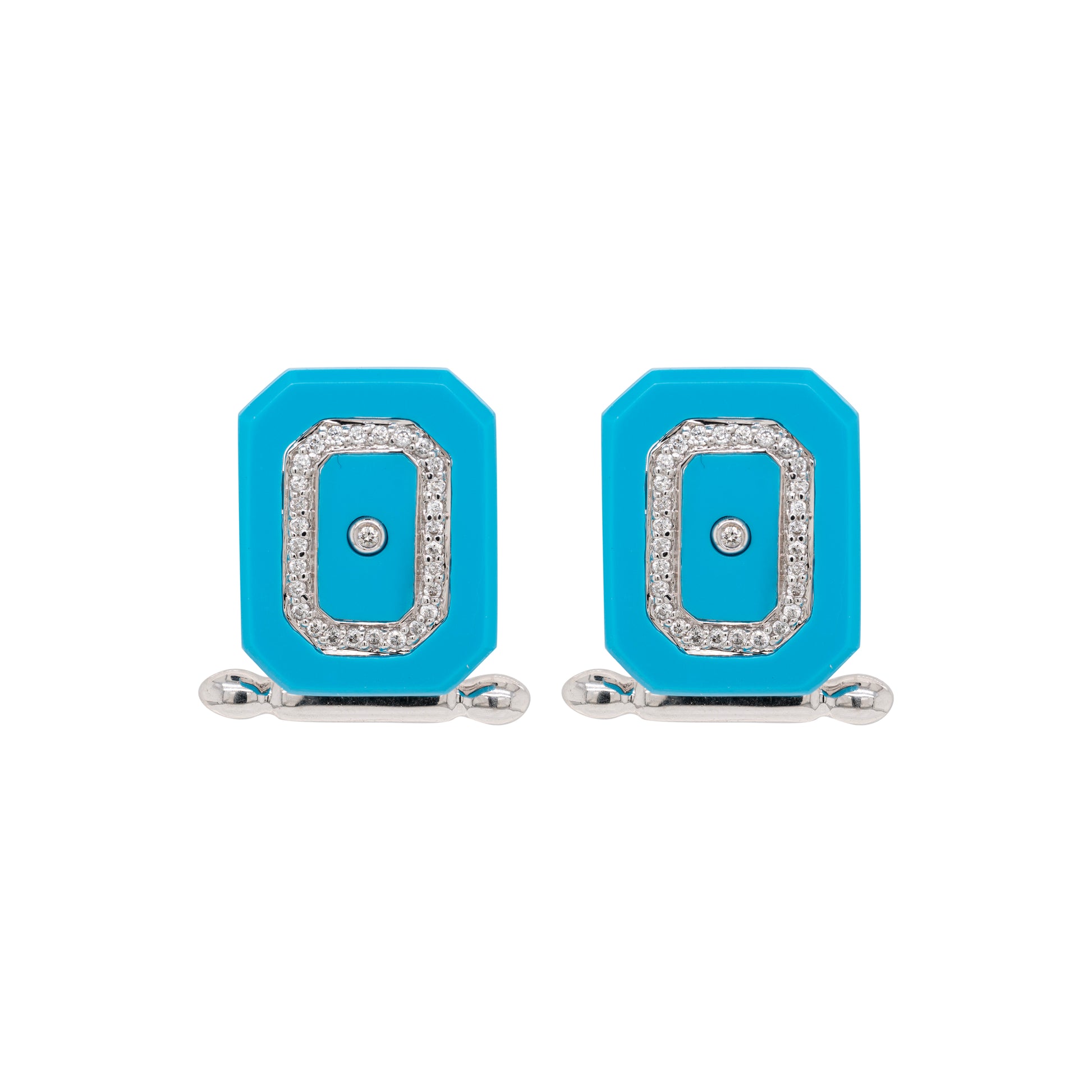 Turquoise and Diamond 18 Carat White Gold Octagonal Cufflinks