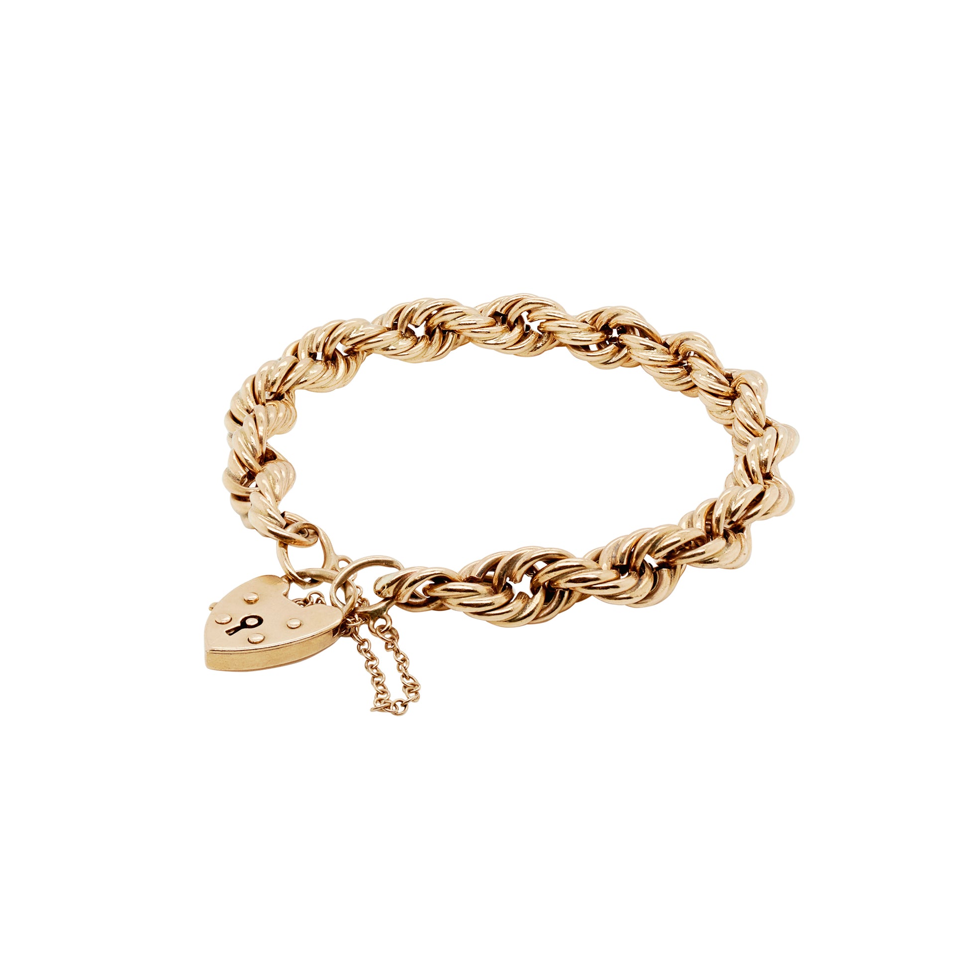 Vintage 9 Carat Yellow Gold Fancy Twist Link Bracelet with Heart Padlock, 1977