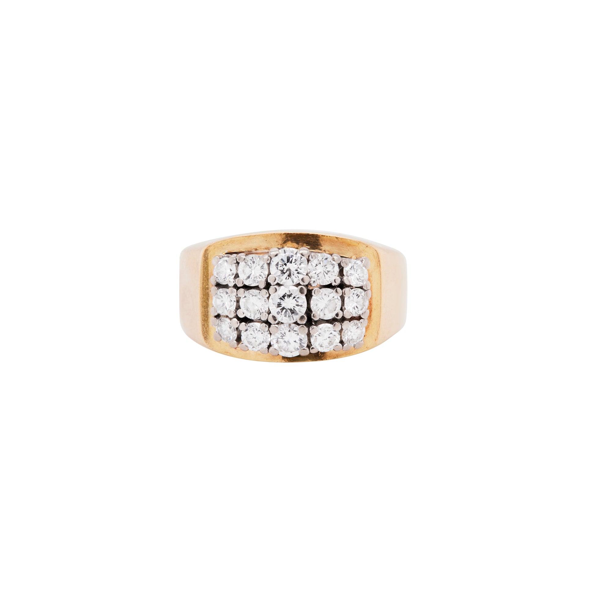 Vintage Bucherer Diamond Cluster Signet Dress Ring in 18K Yellow and White Gold