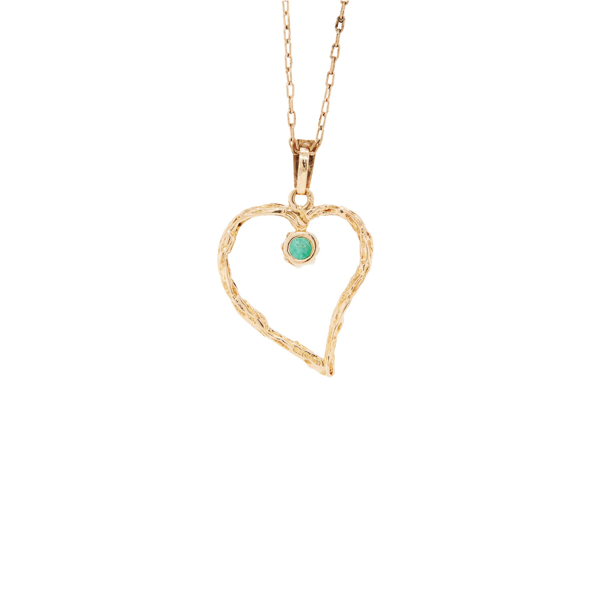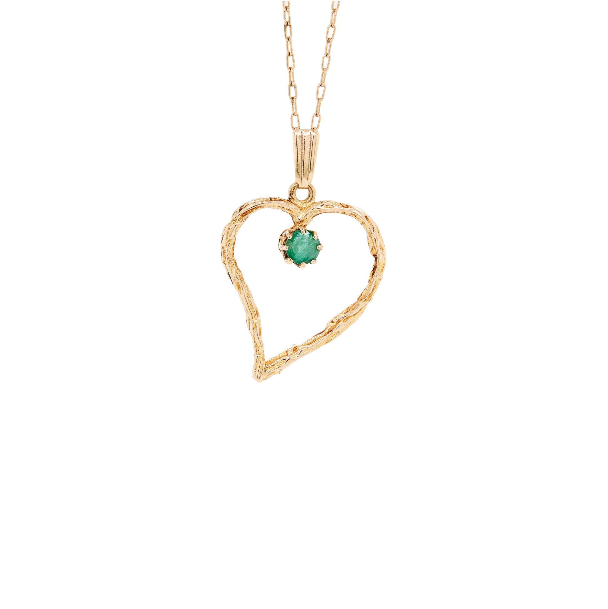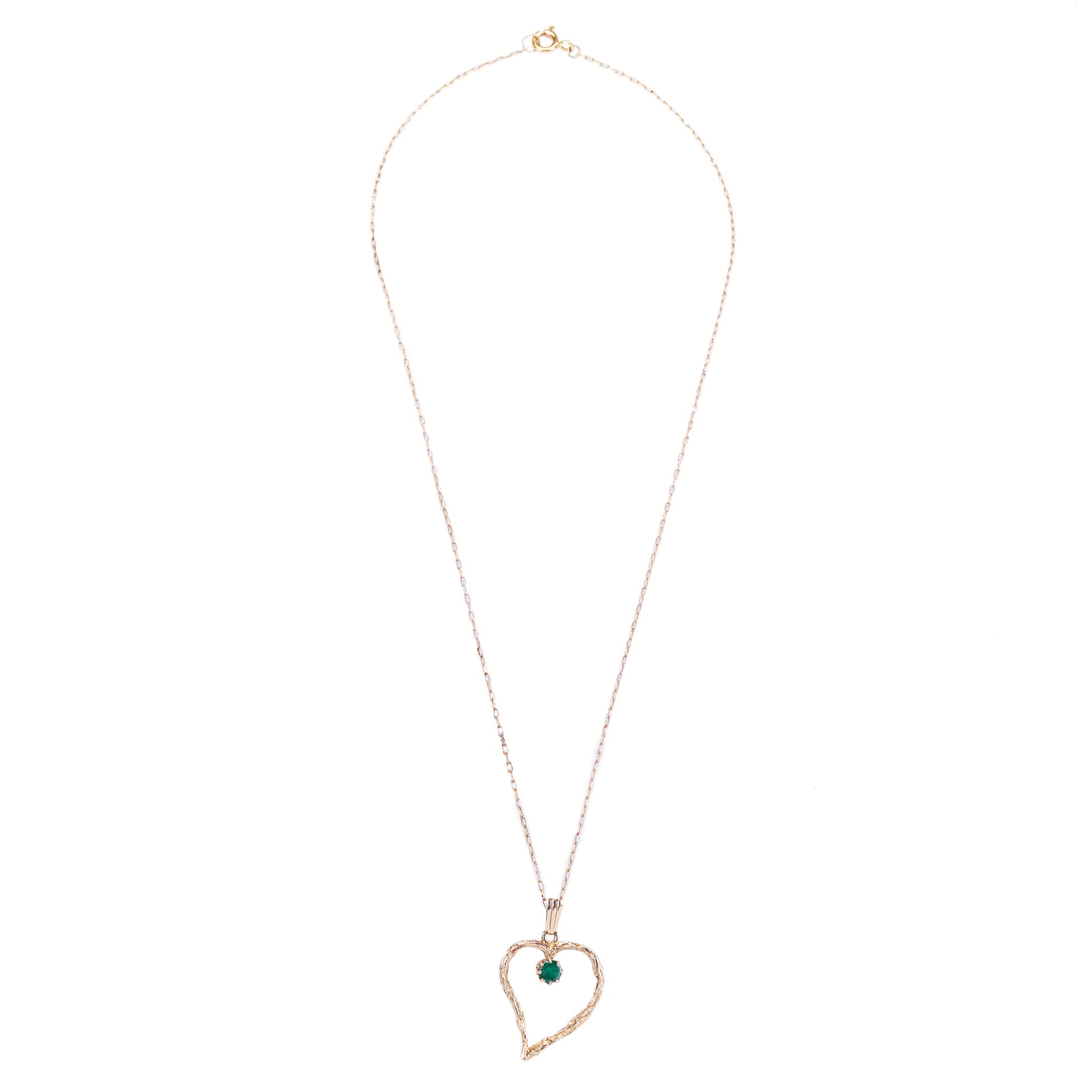 Vintage Emerald & 9 Carat Yellow Gold Open Work Heart Shape Pendant and Chain
